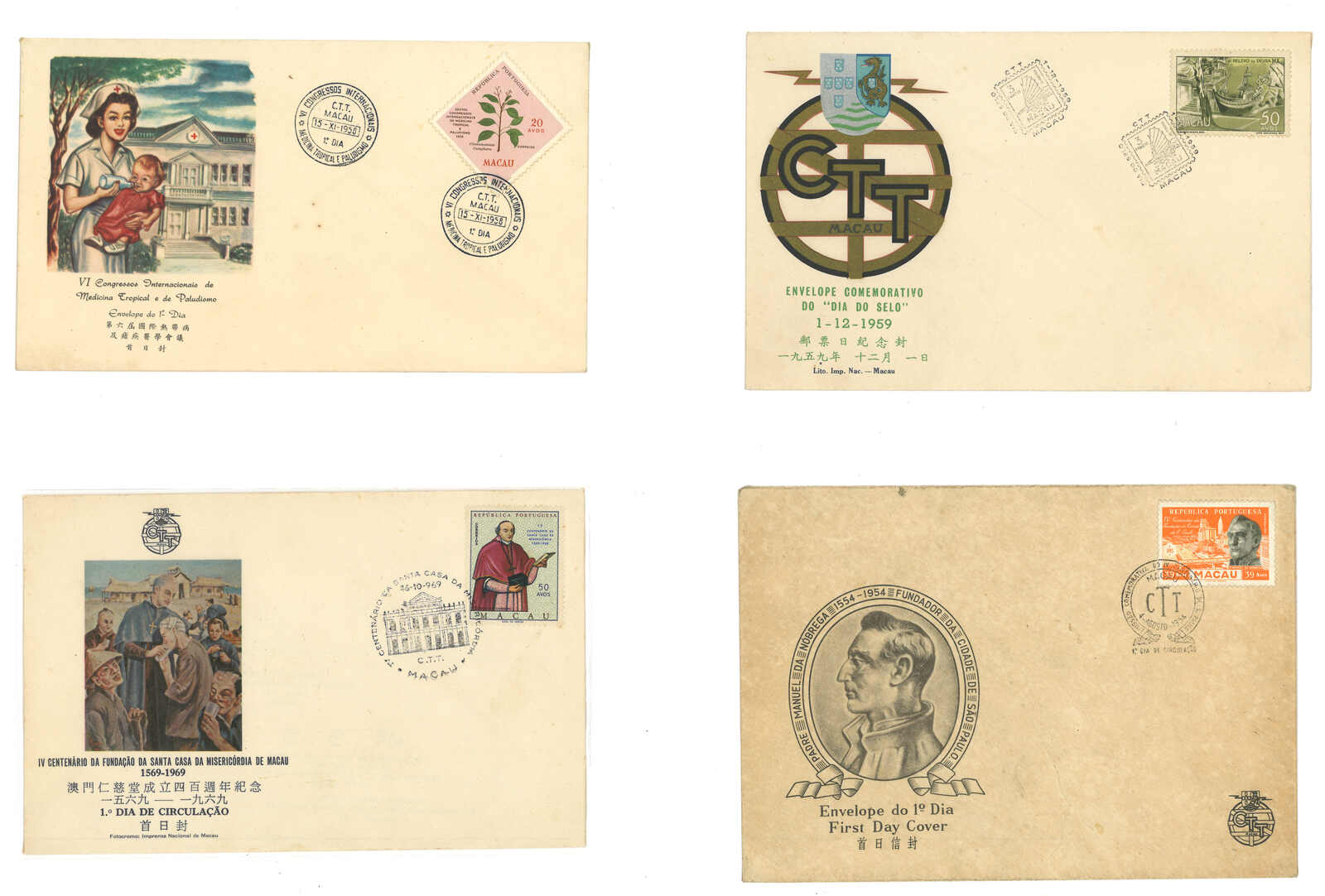 1950-1960s a group of 8 Macau FDC, more outstanding items include Portuguese Stamp Centenary, Holy Year, 400th Anniv of Misericordia Macau, Dragon etc.