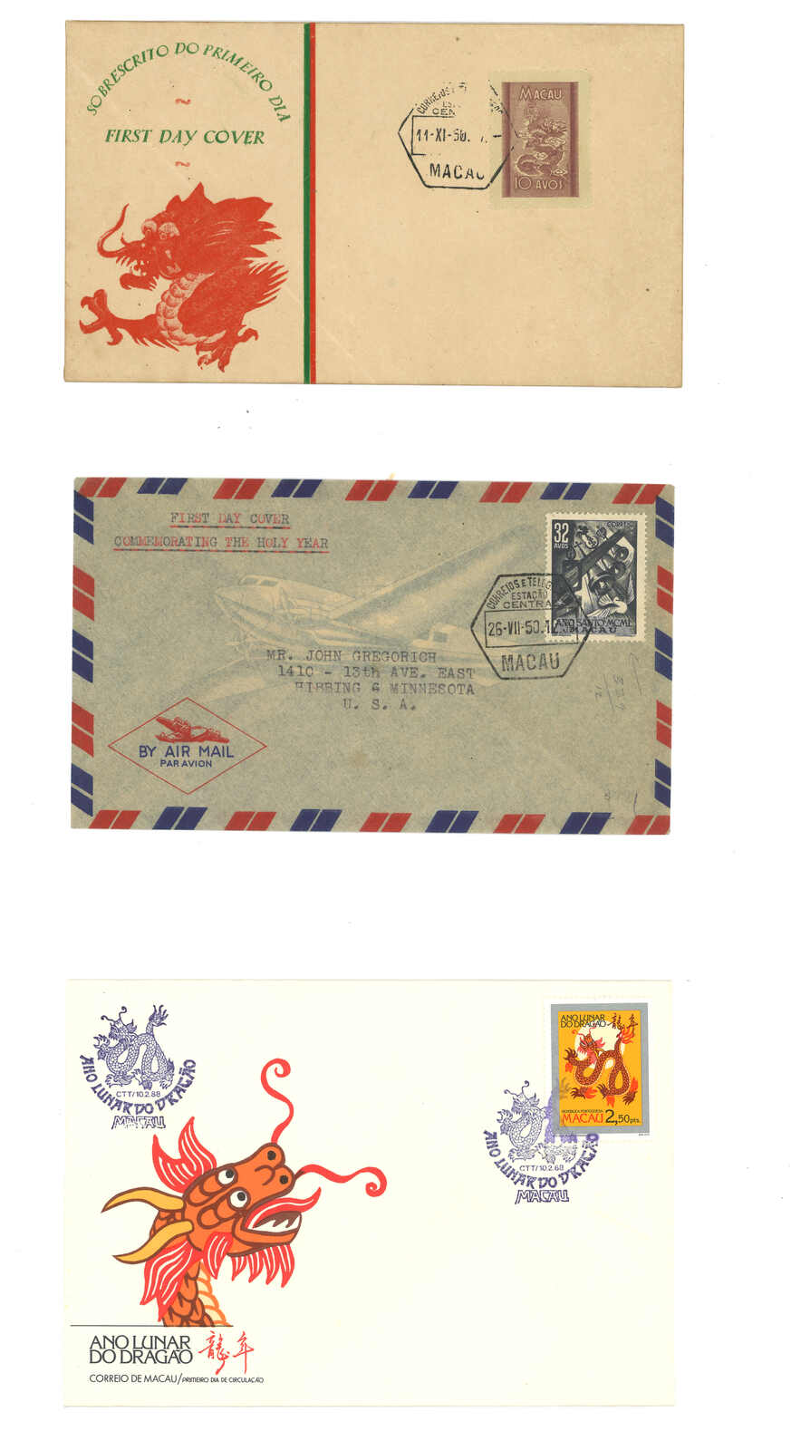 1950至1960年代一組八件澳門首日封,較佳者包括葡萄牙郵票發行百年、聖年、仁慈堂四百週年、龍等。(Image 1)