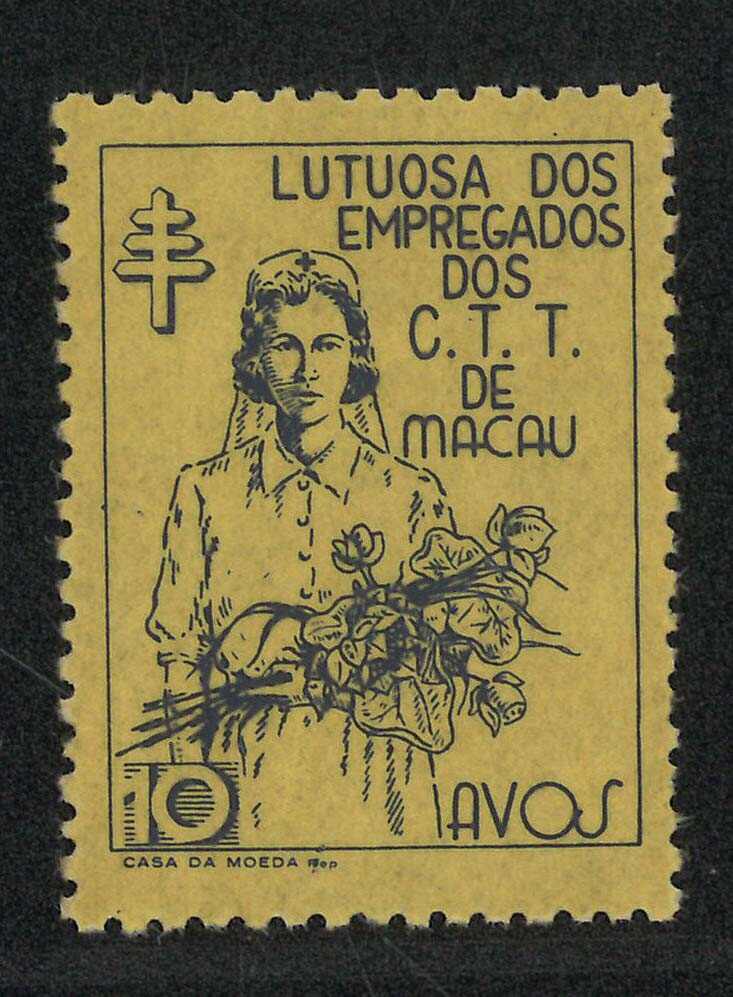 1950 Lutuosa dos Empregados dos CTT de Macau 10a. MNH. This stamp was issued for fundraising of the Anti-Tuberculosis fund of the post office staff.