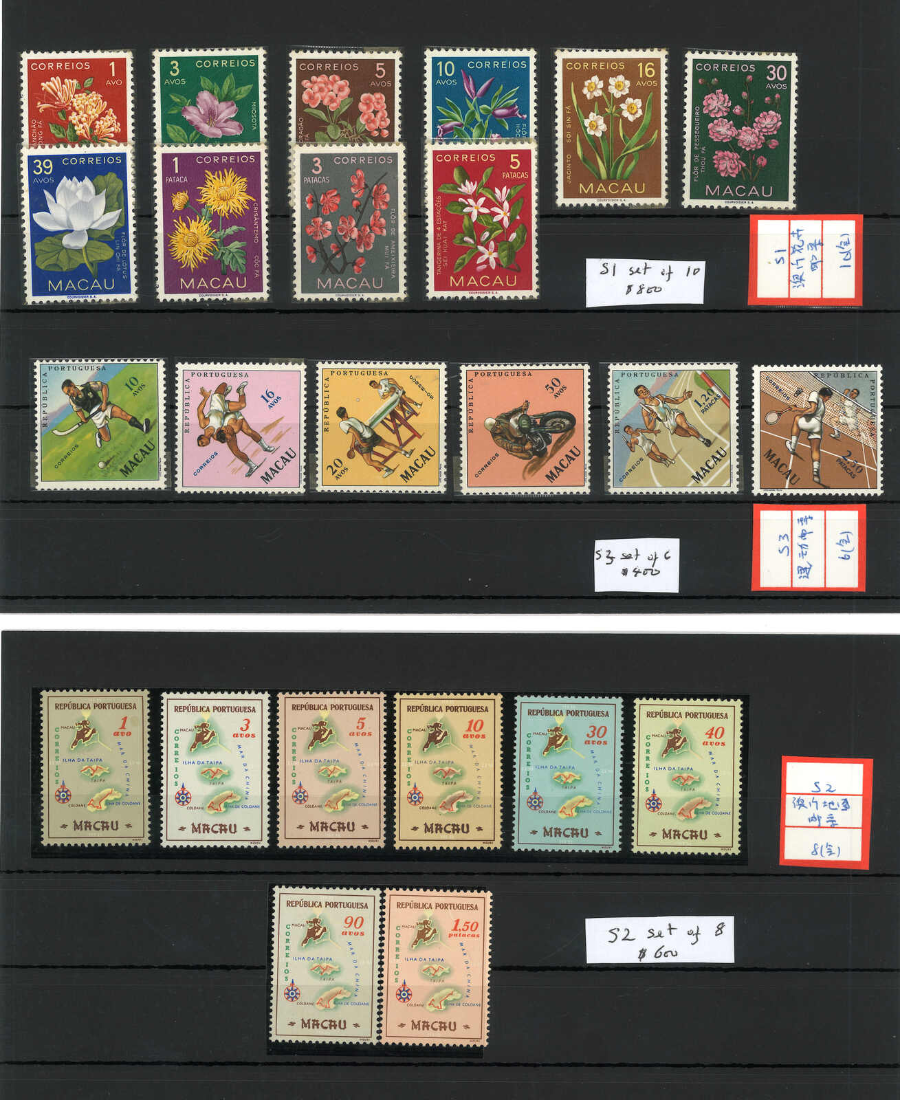 1953-1962 Indigenous Flower, Map of Macau and Sports complete set (Yang 387-396, 399-406, 410-415), MNH. Very Fine.