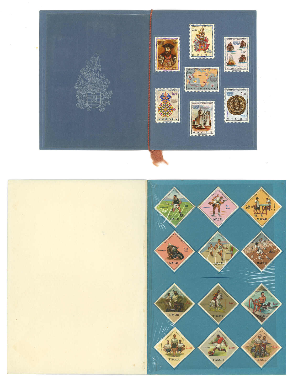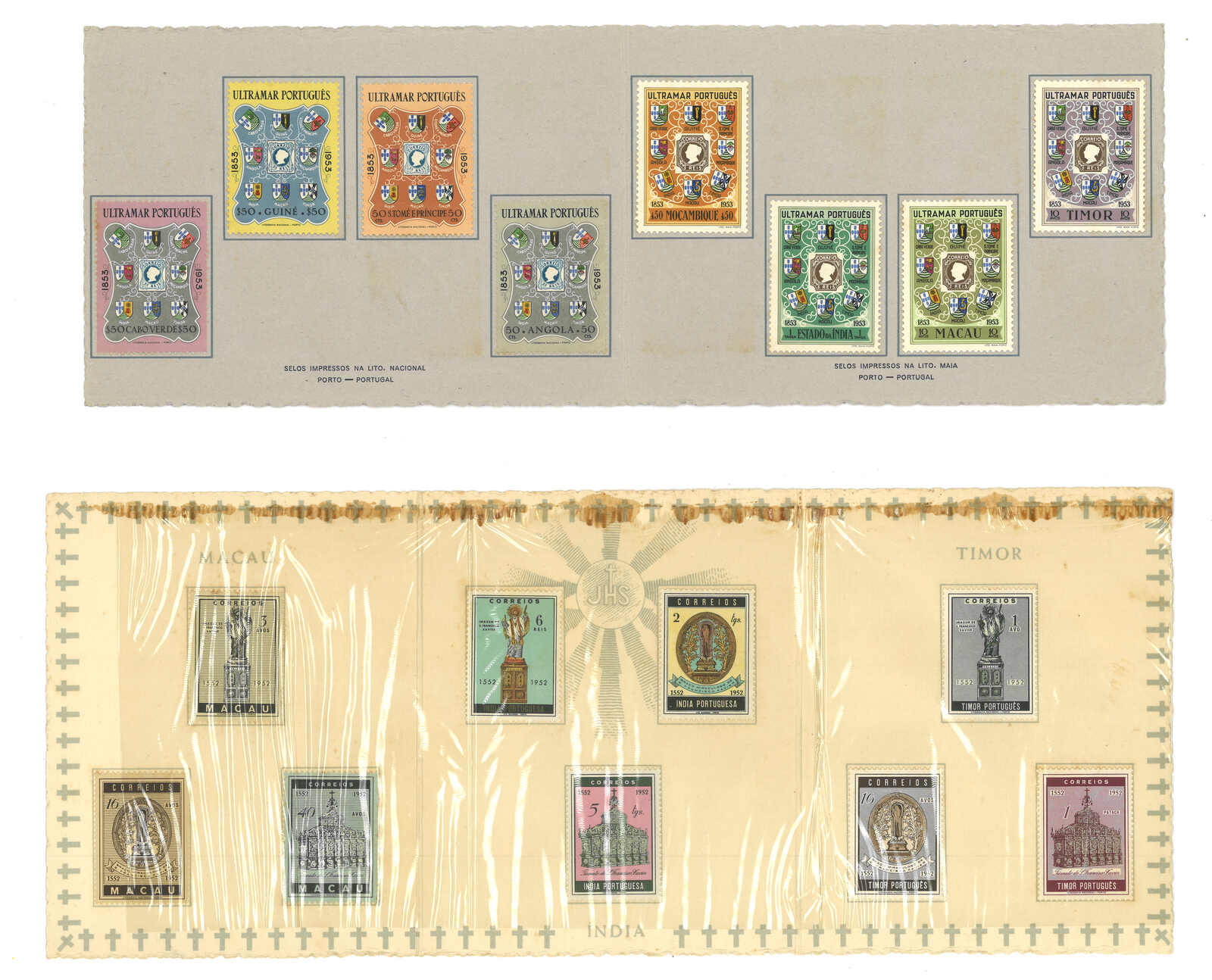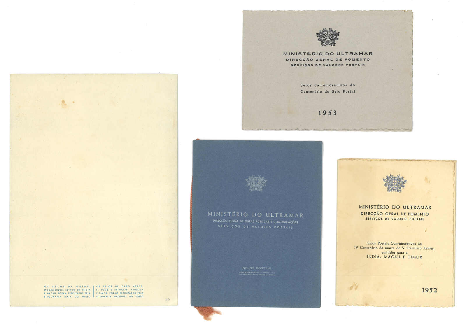 1952-1966 a group of 4 Ministerio do Ultramar presentation folders of Macau and portuguese colonies issues, including 400th Anniv of Death of St Francis Xavier, Centenary of Portuguese Stamps, Sports and Miltary Uniform.
