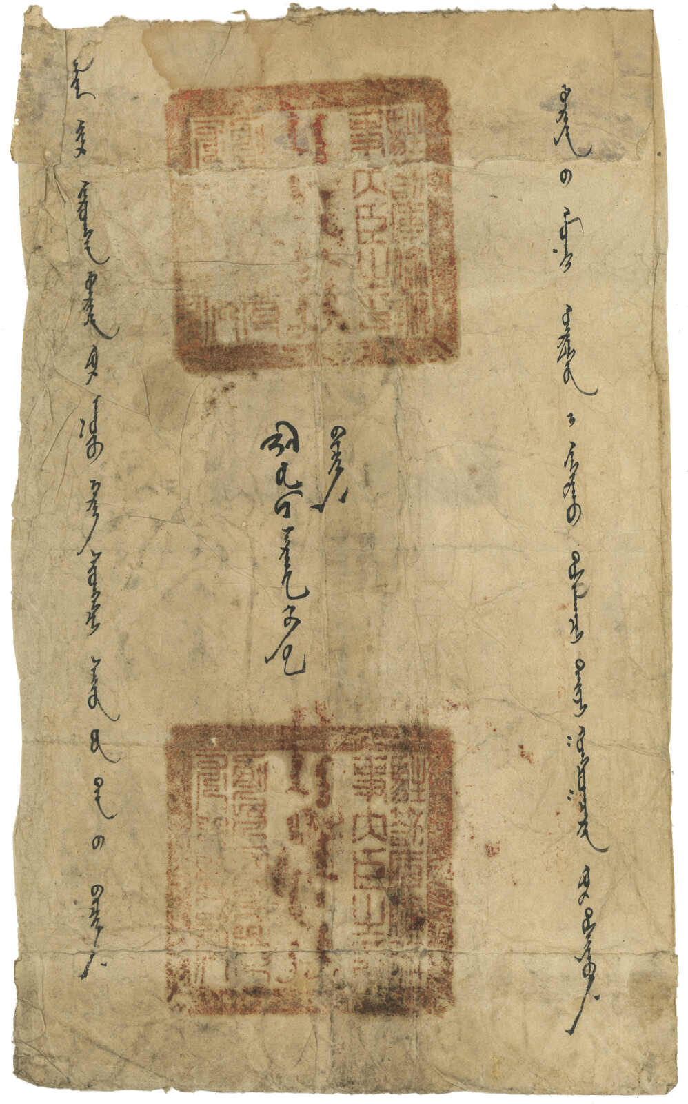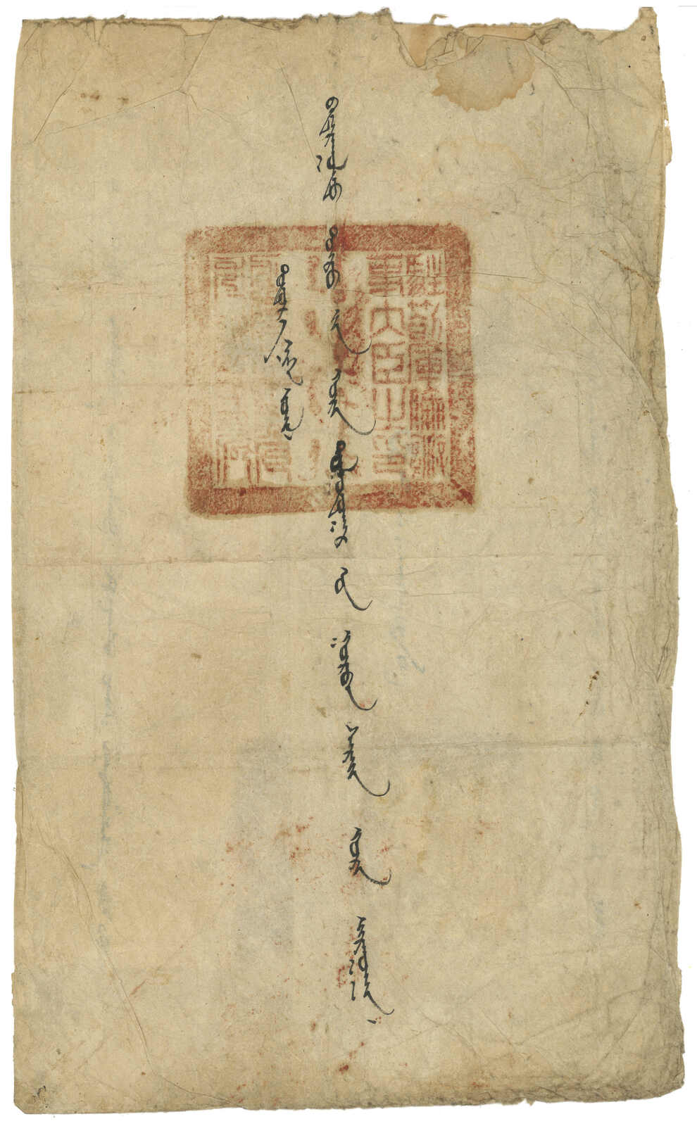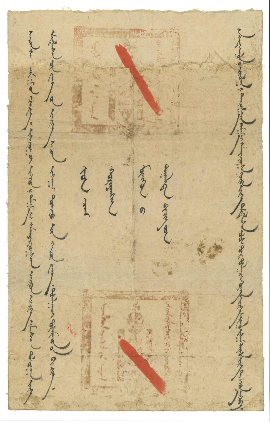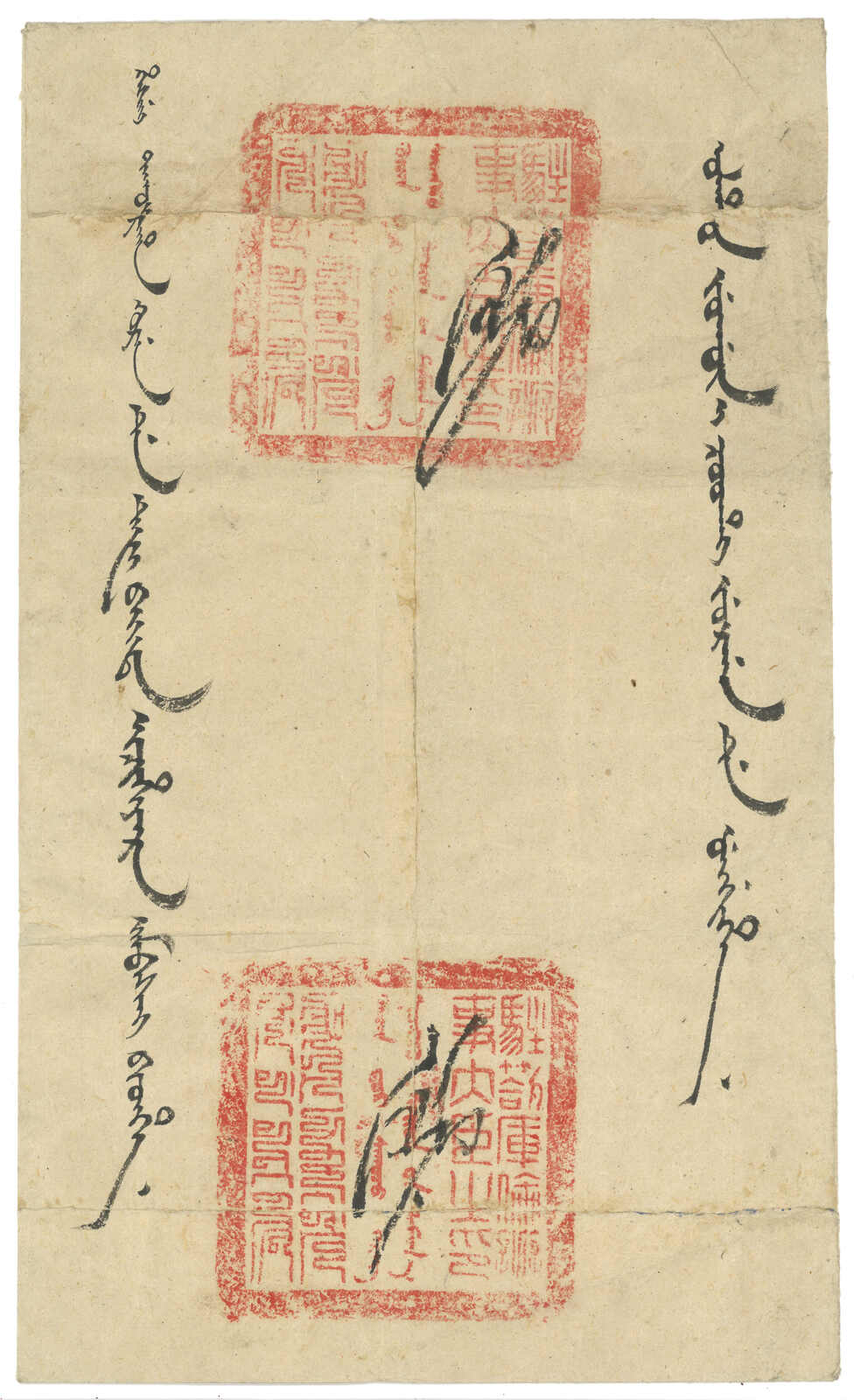 910 cover imageca 1890 an Urtuu waybill from the Urga Amban to the Khan of Khalka Mongolia aimag, showing delivery times. Only a few examples of such waybill exist. A rarity.