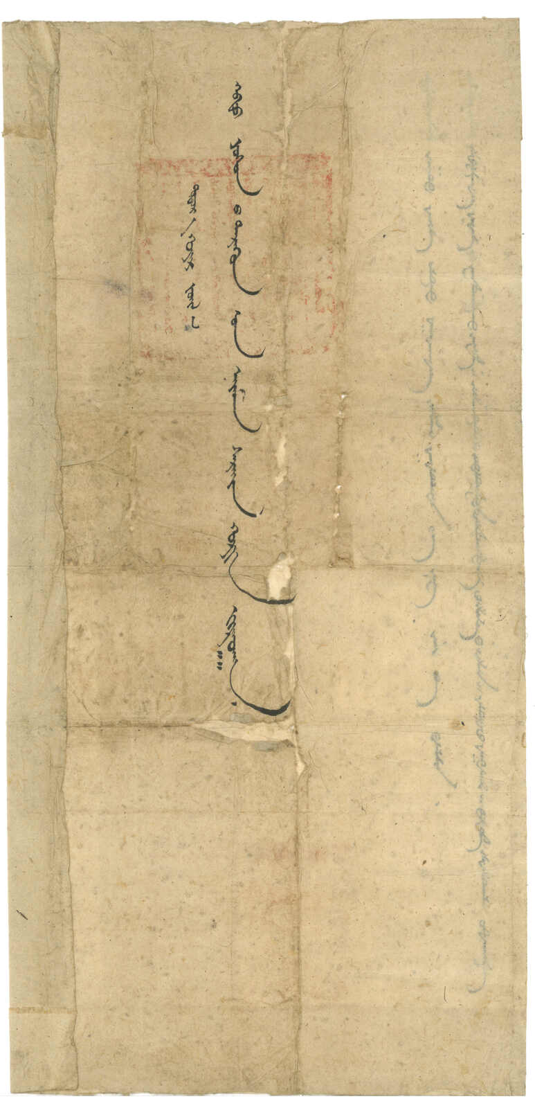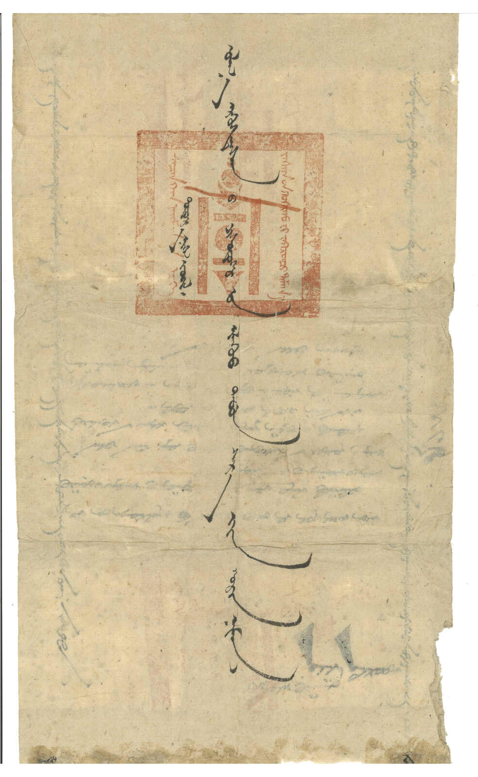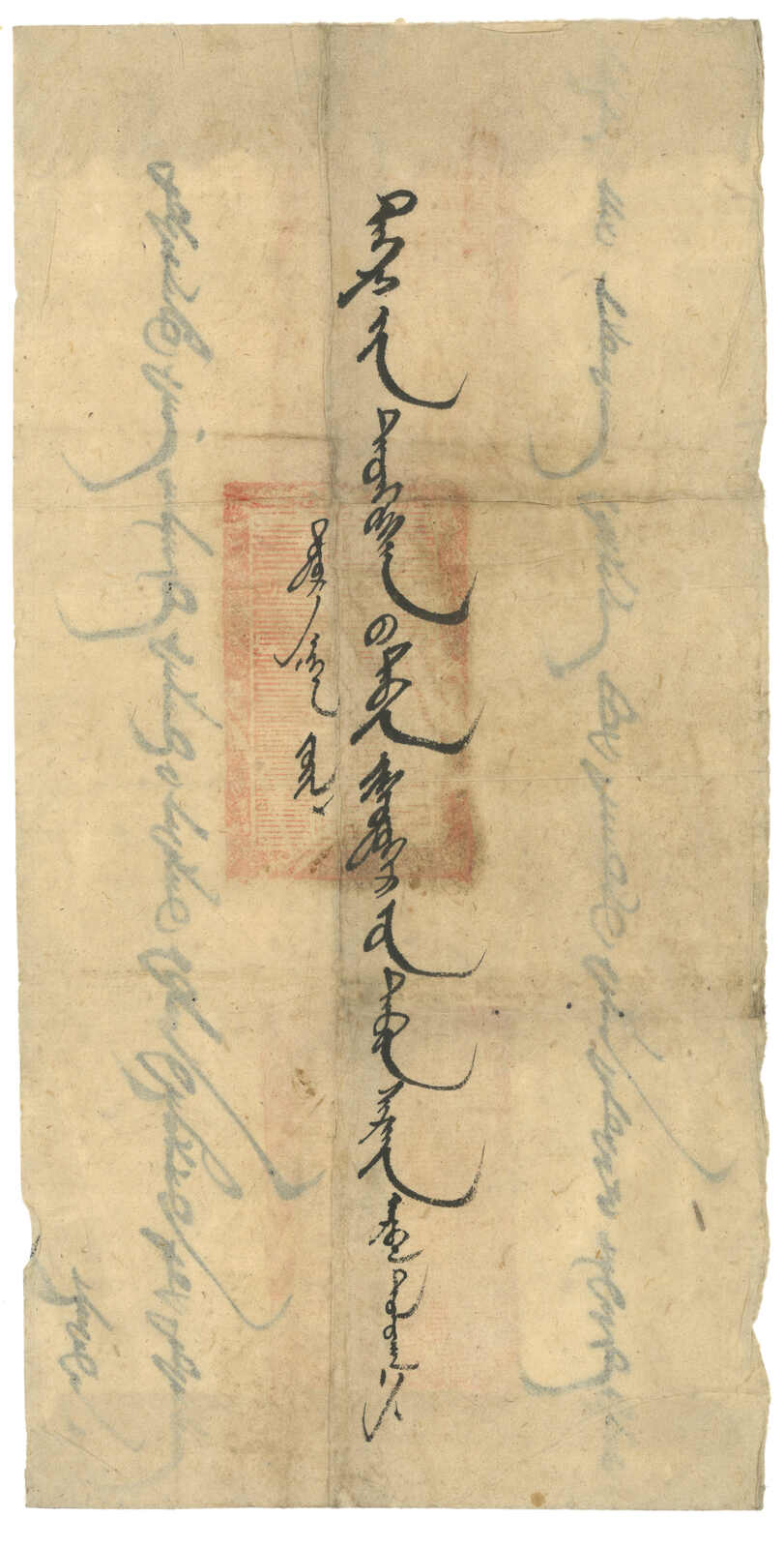 902 cover imageTongzhi Year 12 (1873) an bilingual submission from the Urgan Amban to the emperor. The content was about the succession of an official under the Tustu Khan, reflecting Qing Dynasty was exercising sovereignty in Mongolian. Illustration fig 9, p. 26 in "The Postal History of Mongolia 1841-1941" by W C Hellrigl.