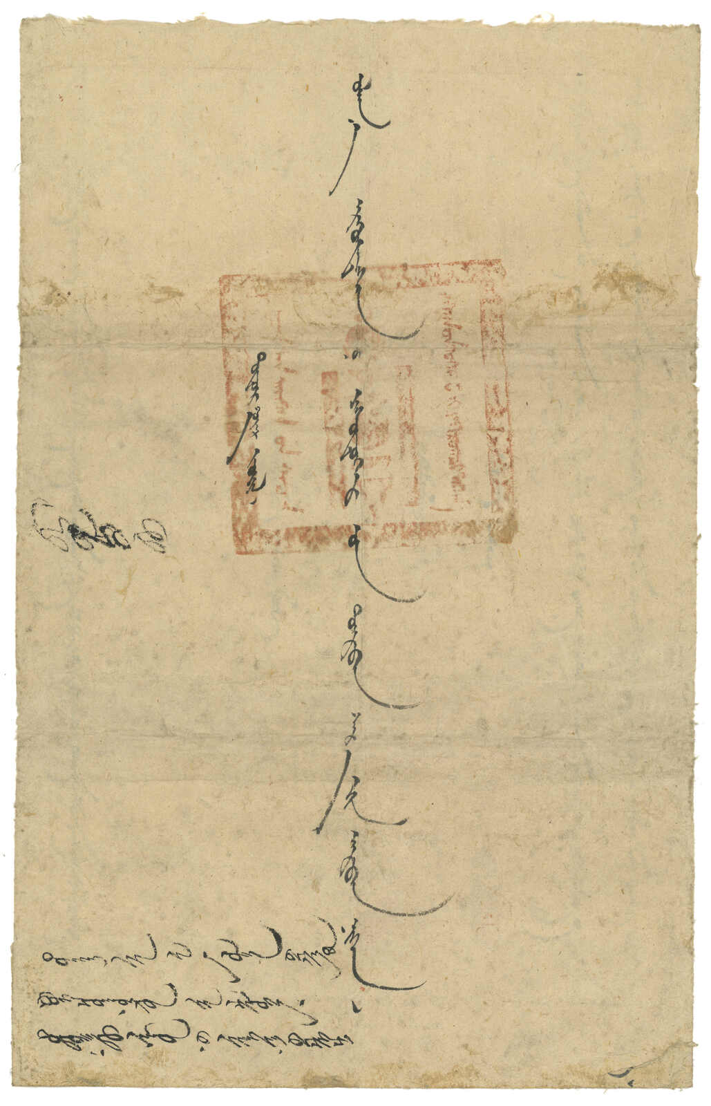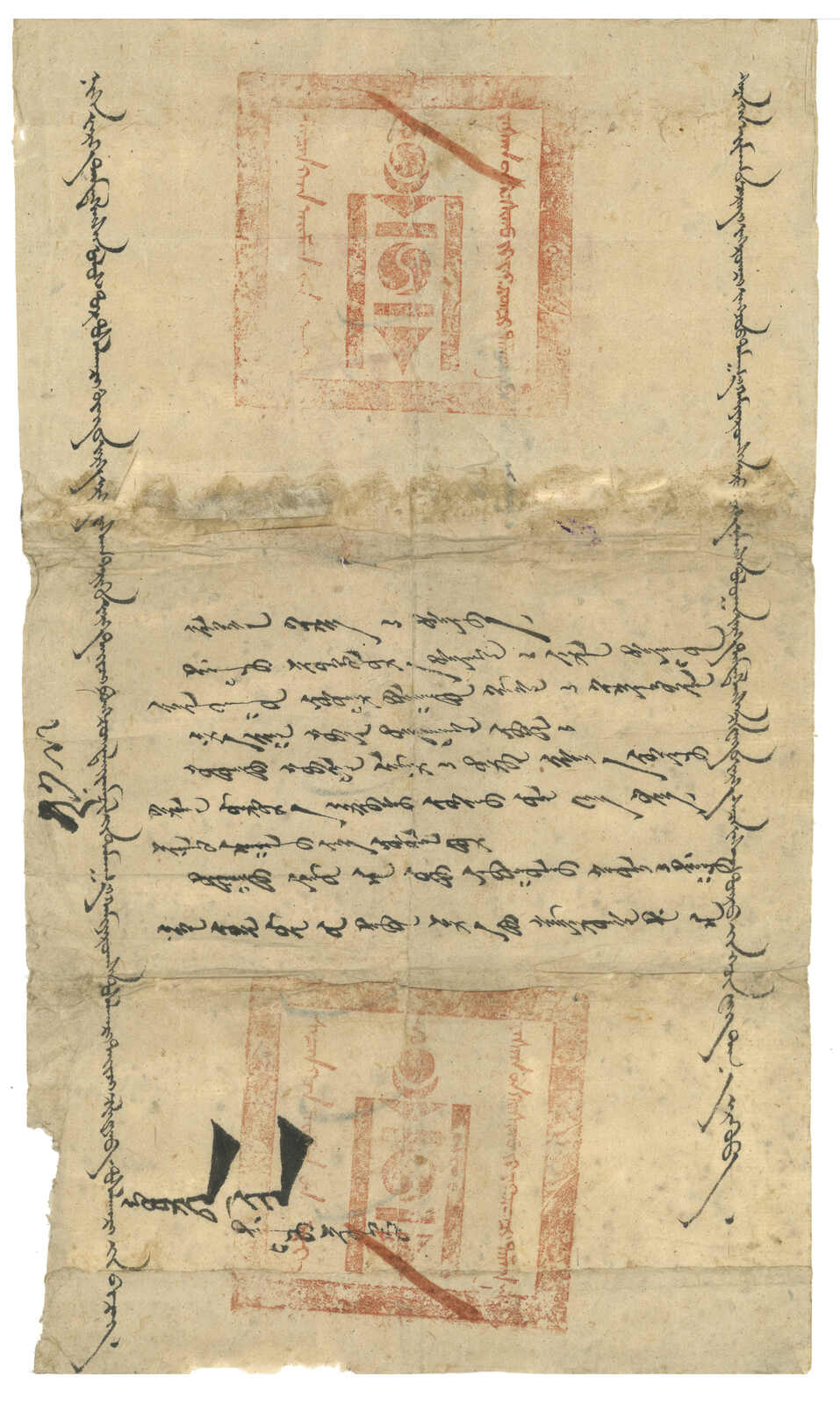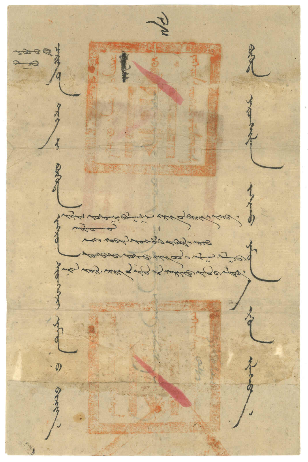 902 cover imageTongzhi Year 12 (1873) an bilingual submission from the Urgan Amban to the emperor. The content was about the succession of an official under the Tustu Khan, reflecting Qing Dynasty was exercising sovereignty in Mongolian. Illustration fig 9, p. 26 in "The Postal History of Mongolia 1841-1941" by W C Hellrigl.