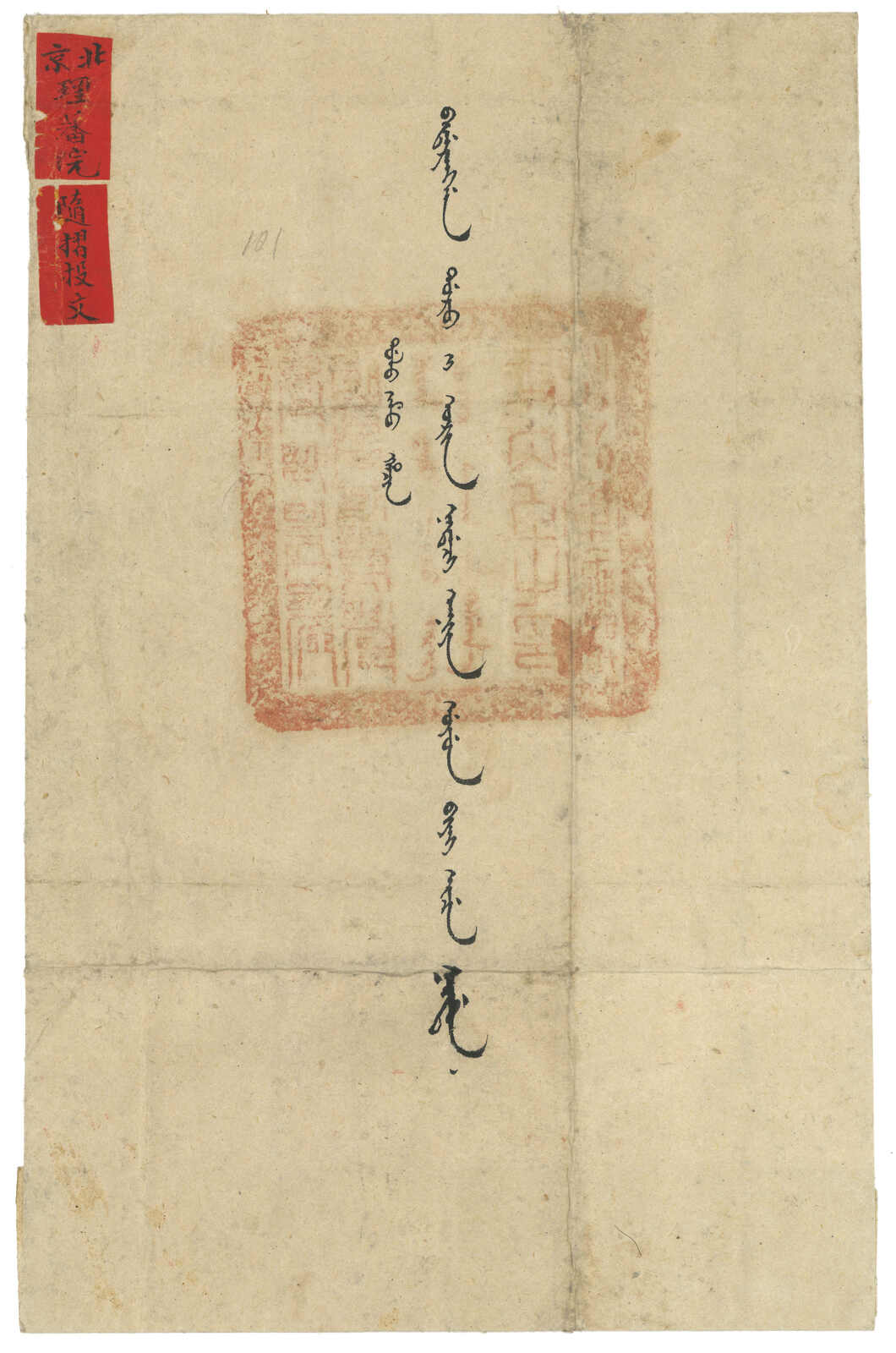 光緒二十七年(1901)公文封,出自庫倫大臣,內容為未能前往朝貢之喇嘛名單。鈐庫倫大臣紅印。(Image 1) (Image 2)
