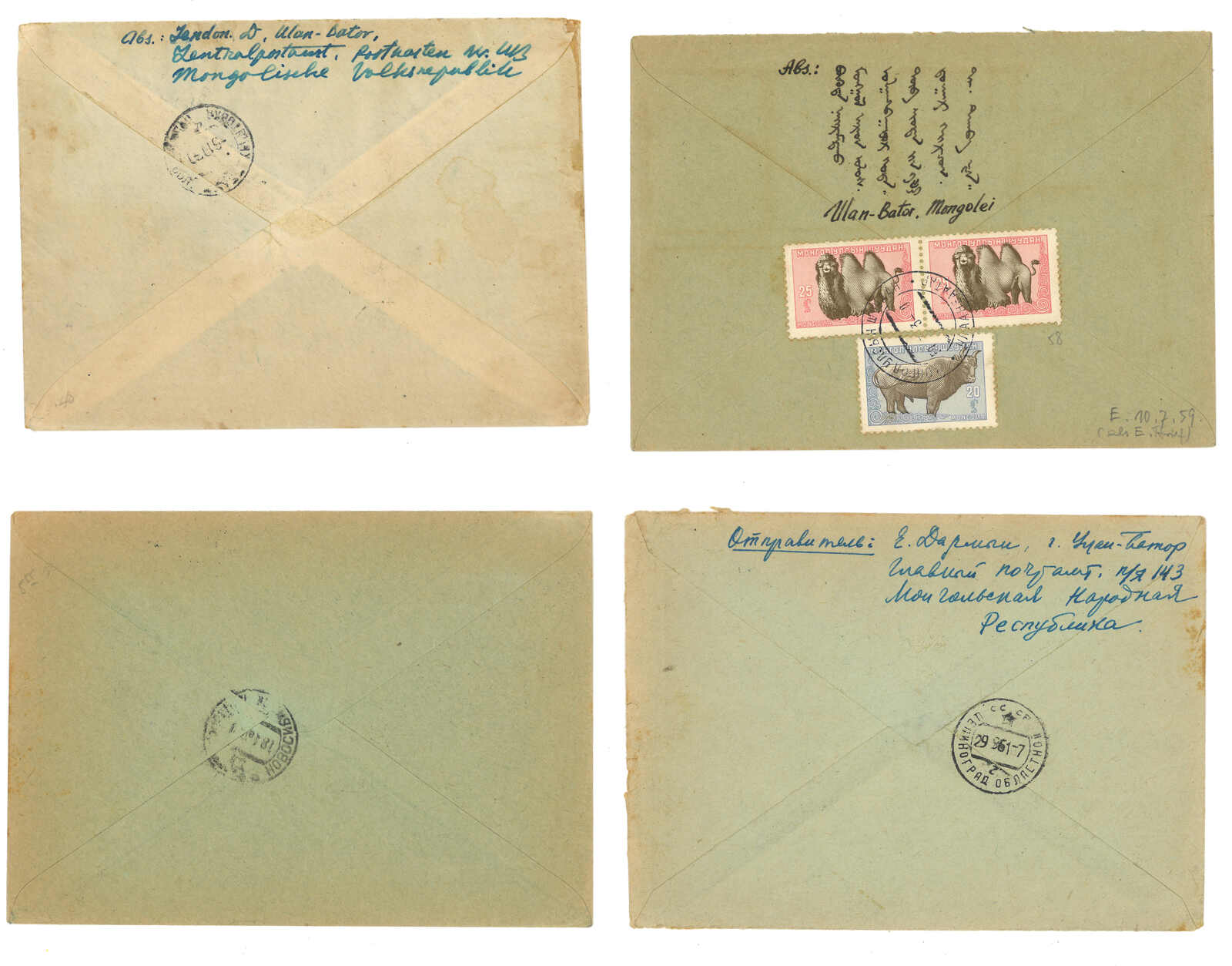 1179 cover image1960s a group of 7 covers from Mongolia to USSR, f.w. various sets of commemorative issues, including 40th Anniv of the People's Republic - Livestock, -Cultural Life etc. Including one illustrative cover.