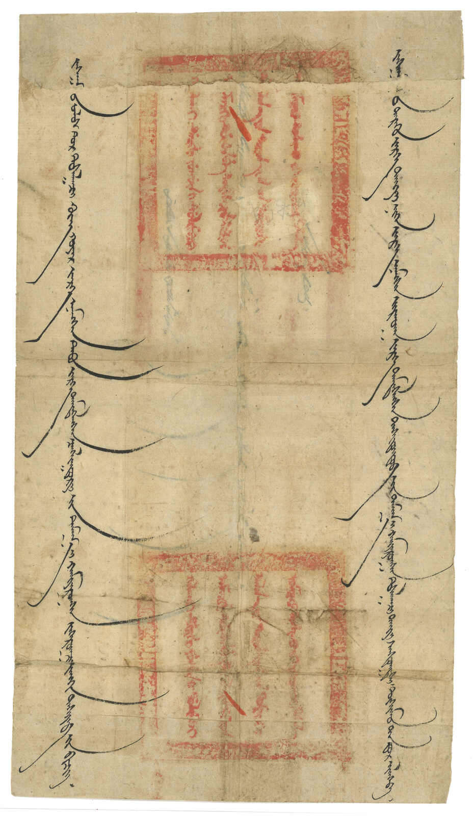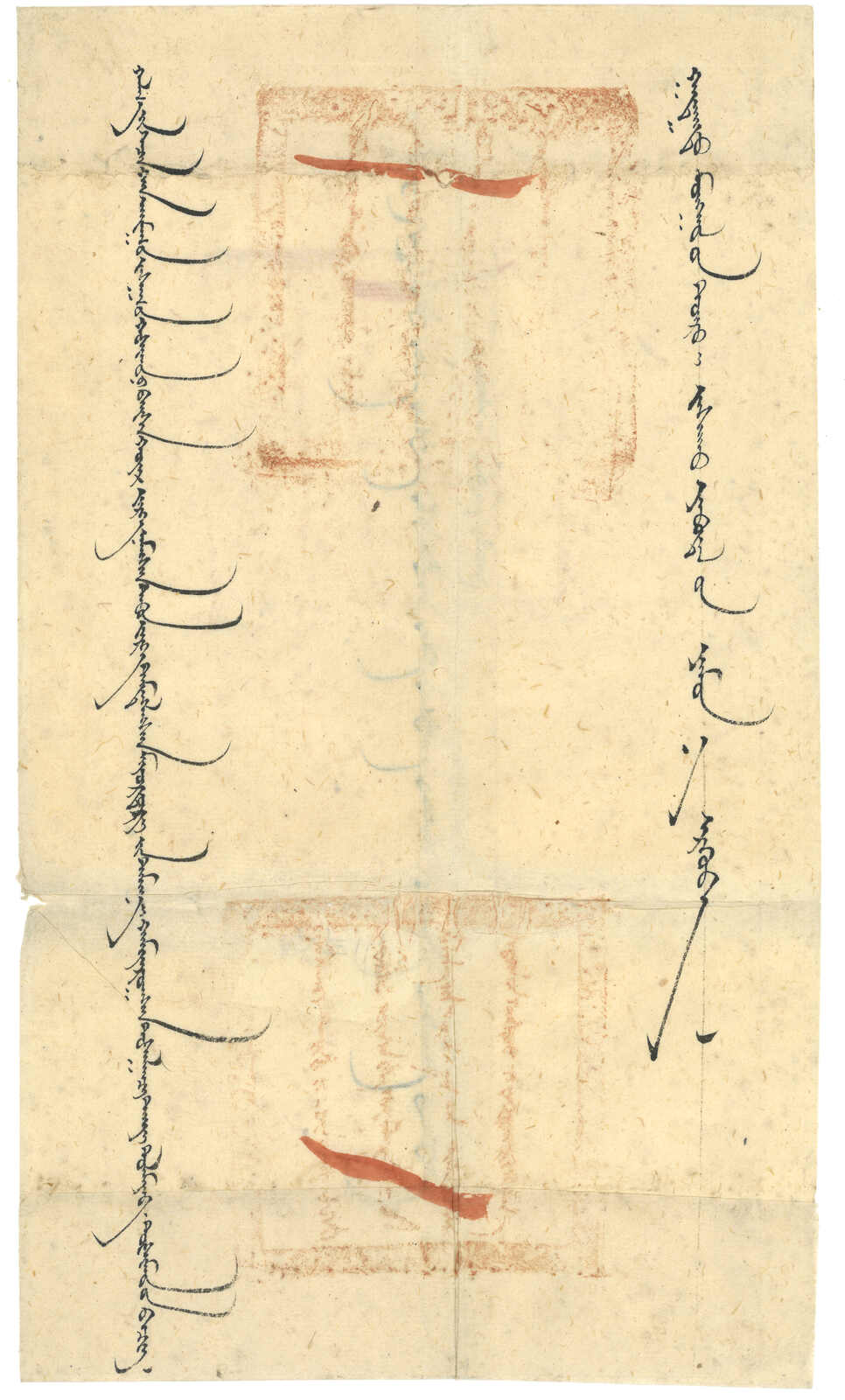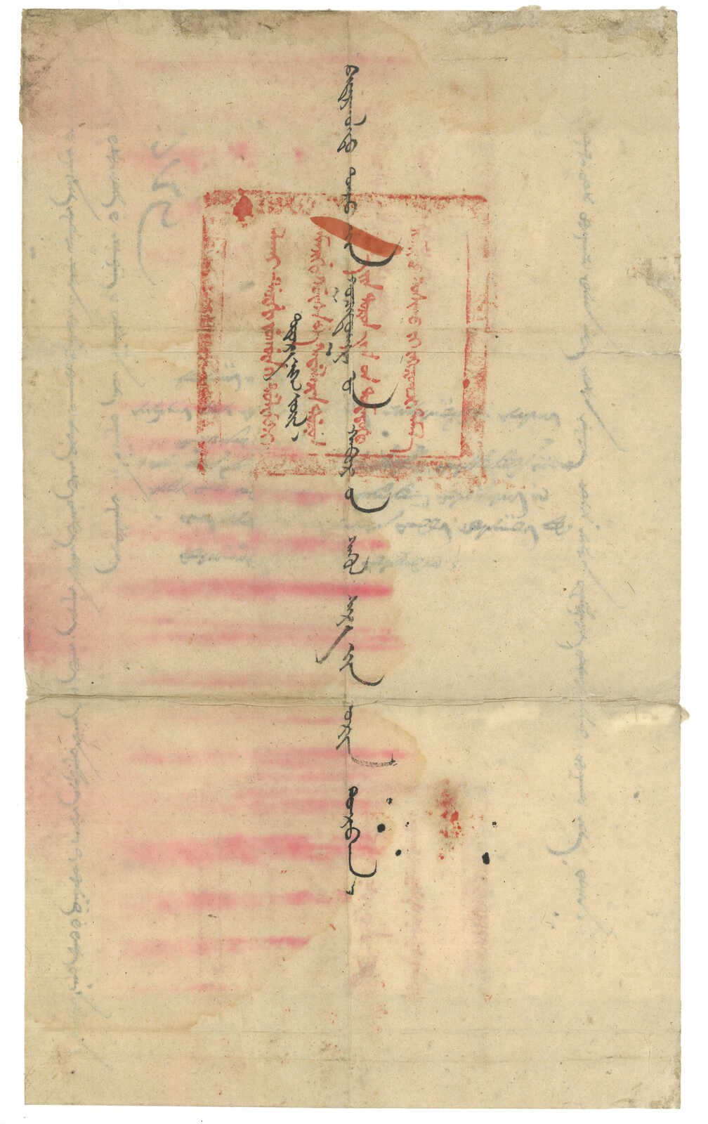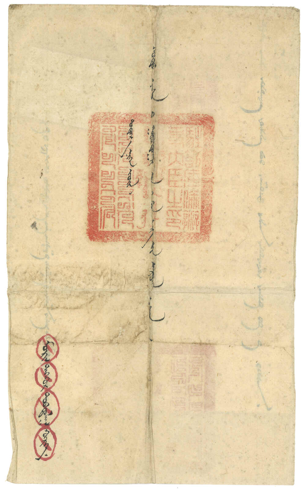 咸豐十二年(1862)大型公文封,由車臣汗貴族呈理藩院。鈐紅色戳記。(Image 1)
