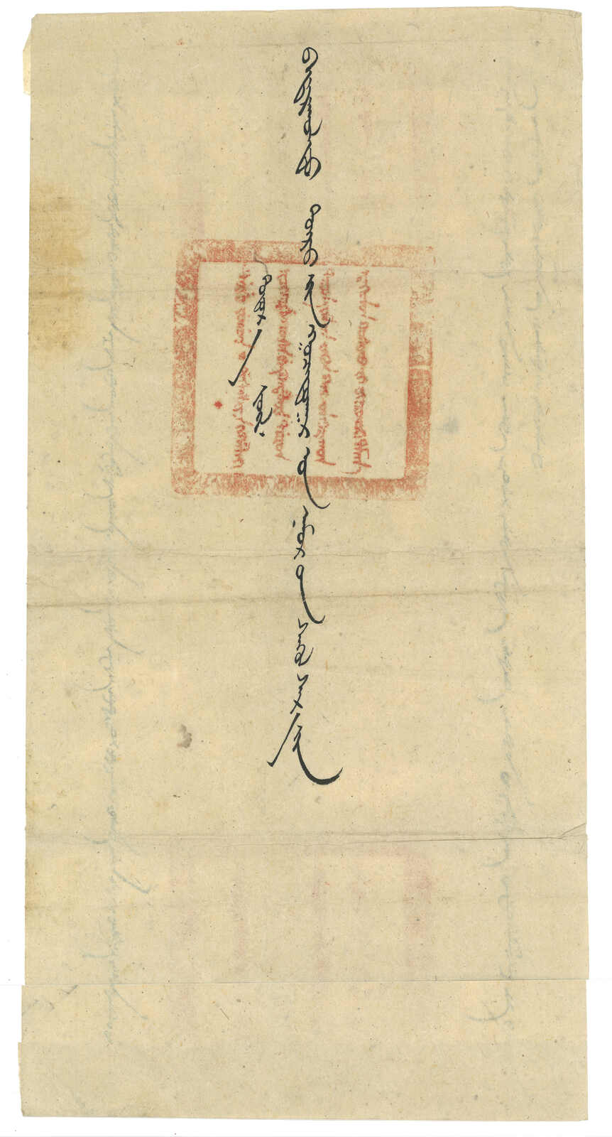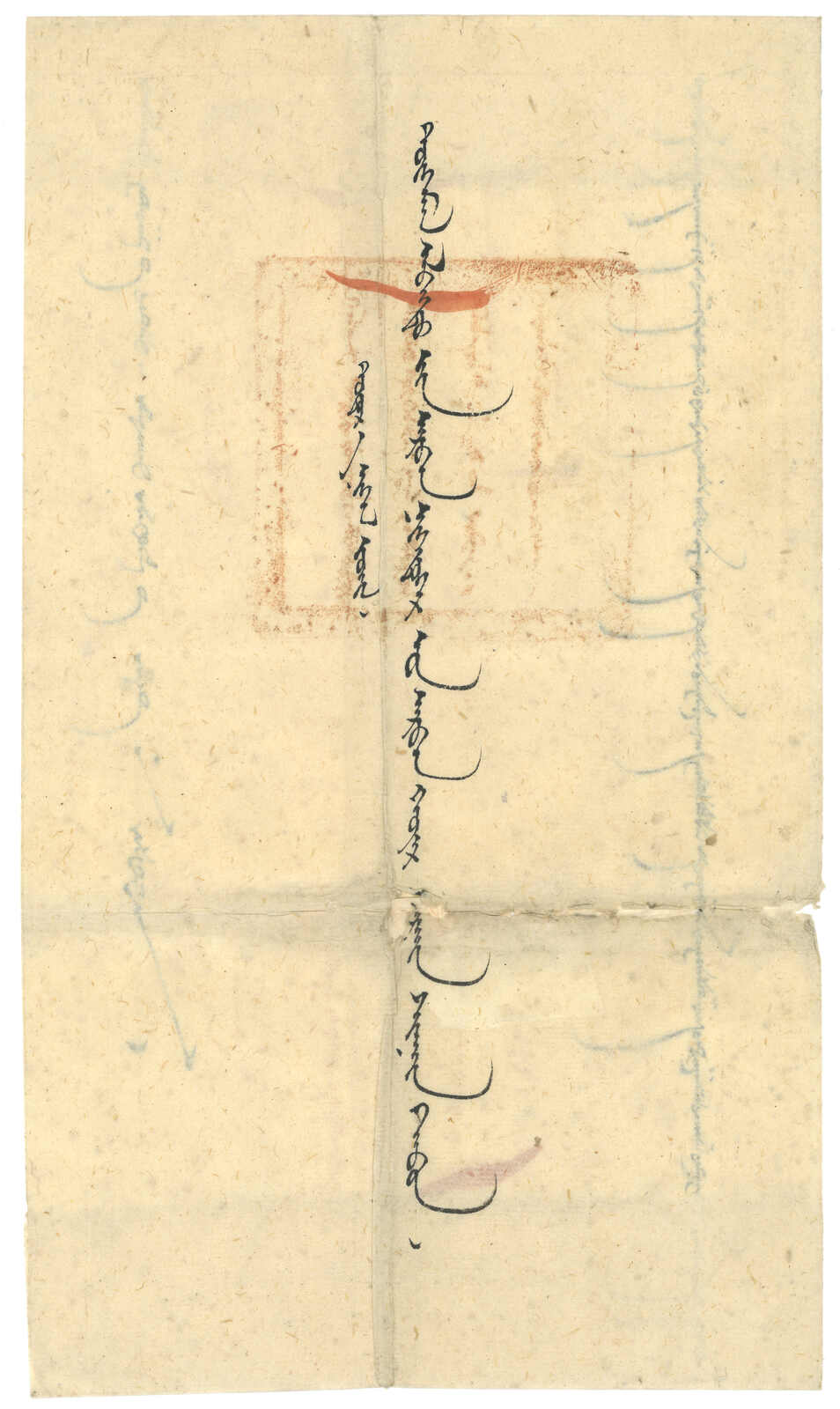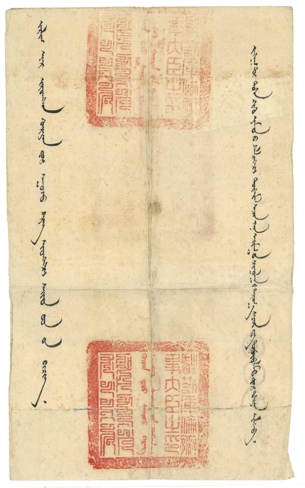 宣統三年(1911)大型公文封,由庫倫大臣寄車臣汗,鈐紅色官印。當時庫倫大臣為三多,他為最後一任庫倫大臣。(Image 1)