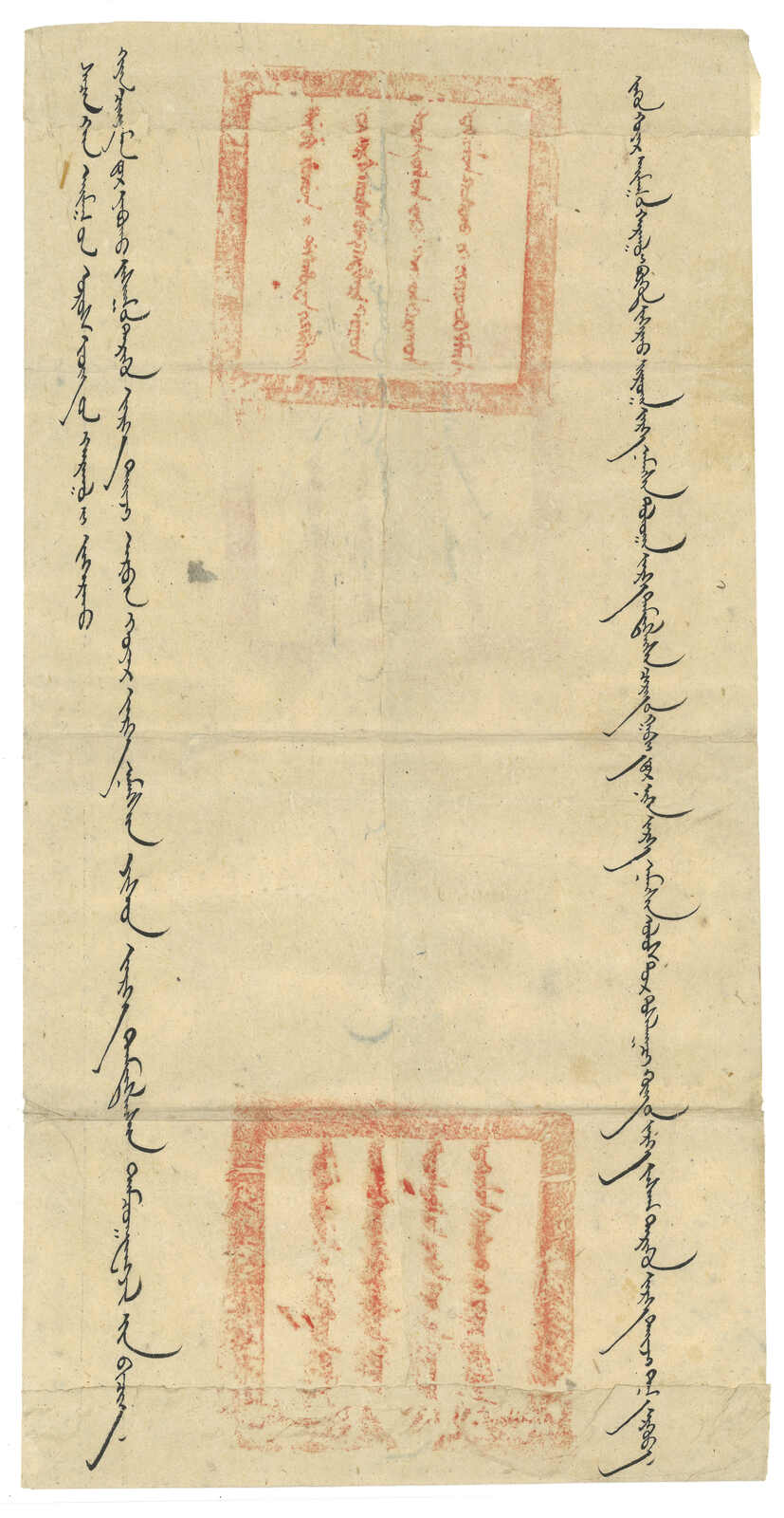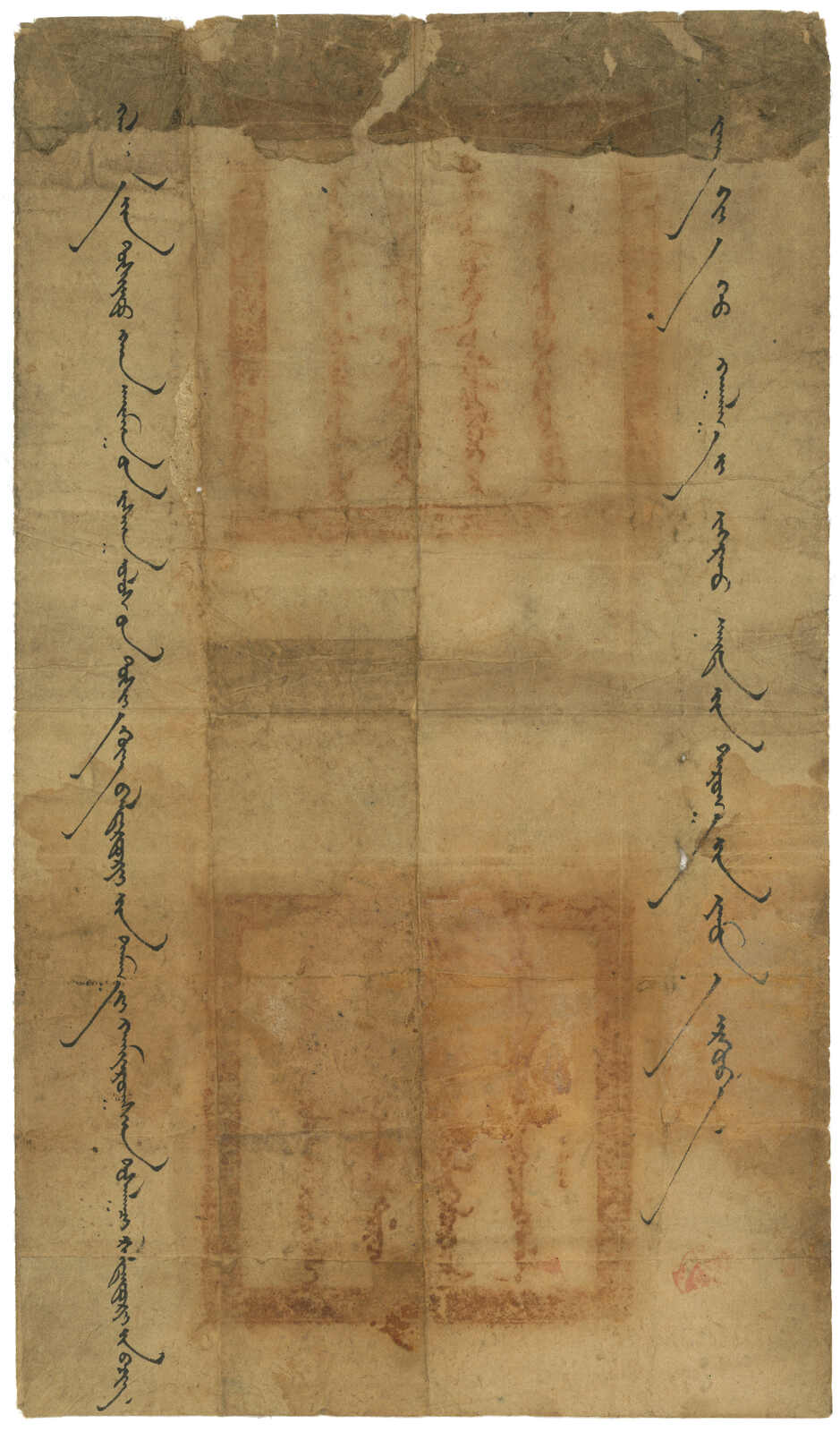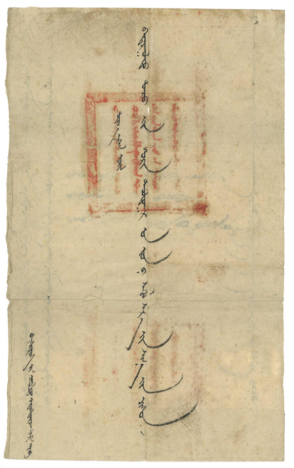 宣統三年(1911)大型公文封,由庫倫大臣寄車臣汗,鈐紅色官印。當時庫倫大臣為三多,他為最後一任庫倫大臣。(Image 1)