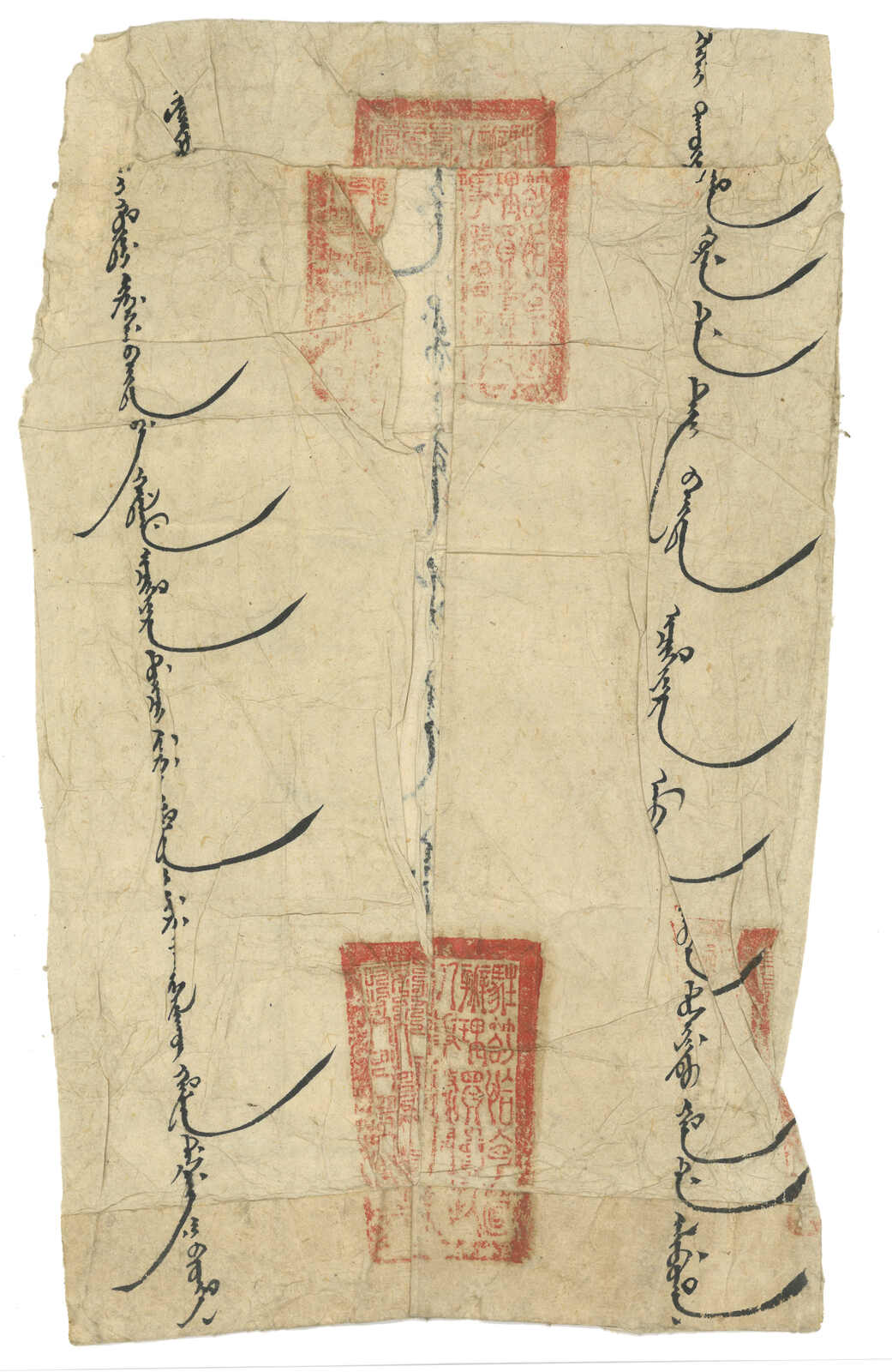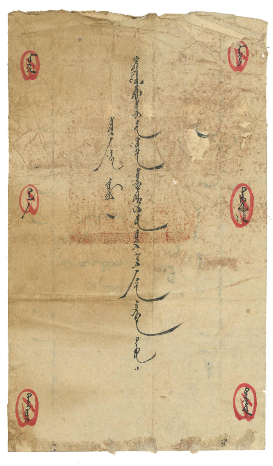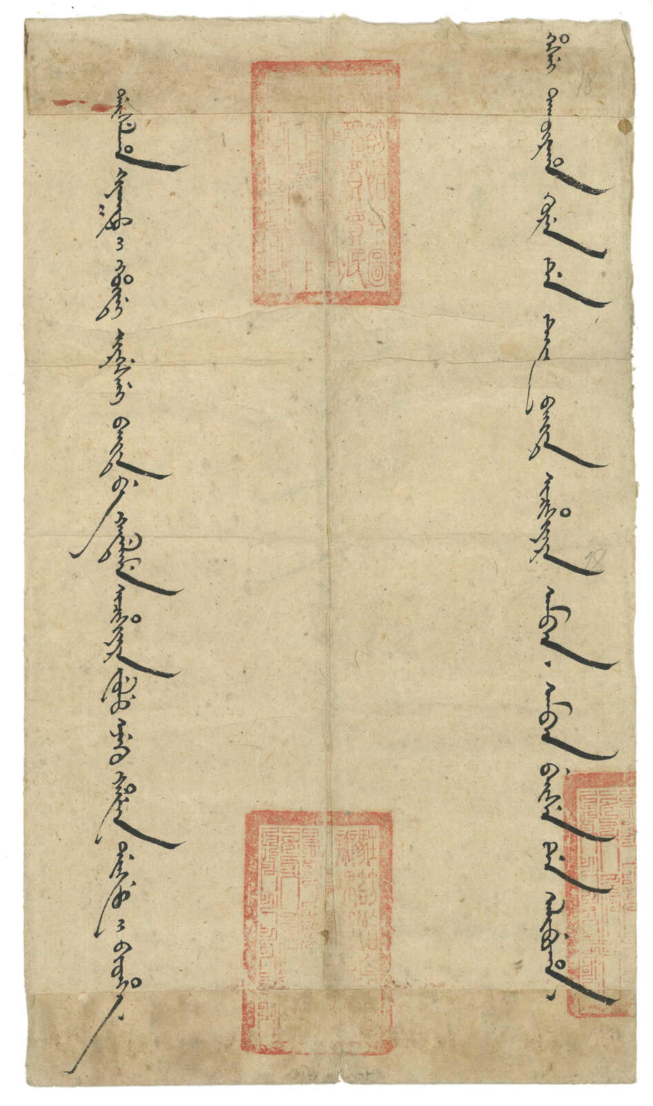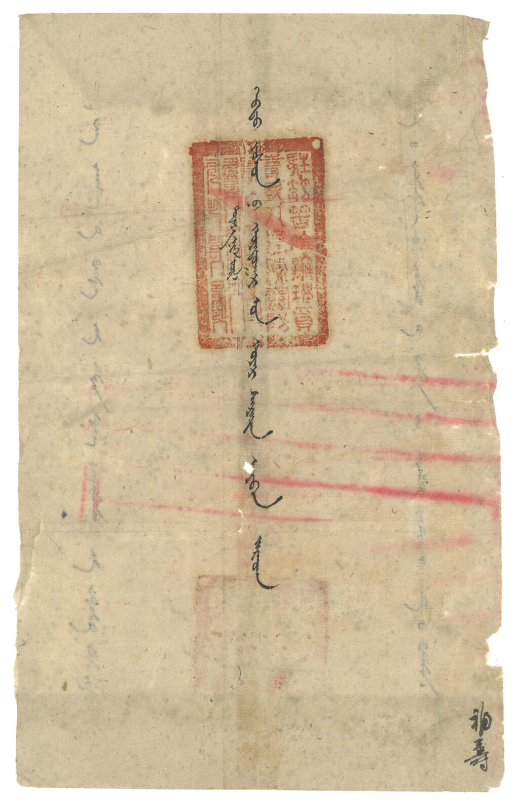 十八至二十世紀一組九件車臣汗之古代公文封,由蒙古驛站送遞,包含由同治至宣統年間之例子。十分豐富。部分附譯本。(Image 1)