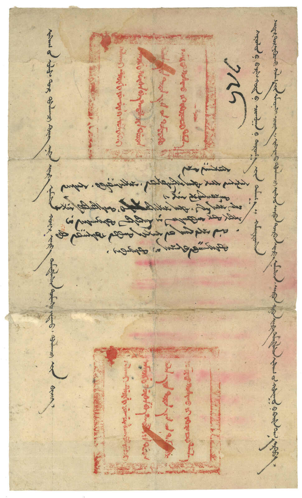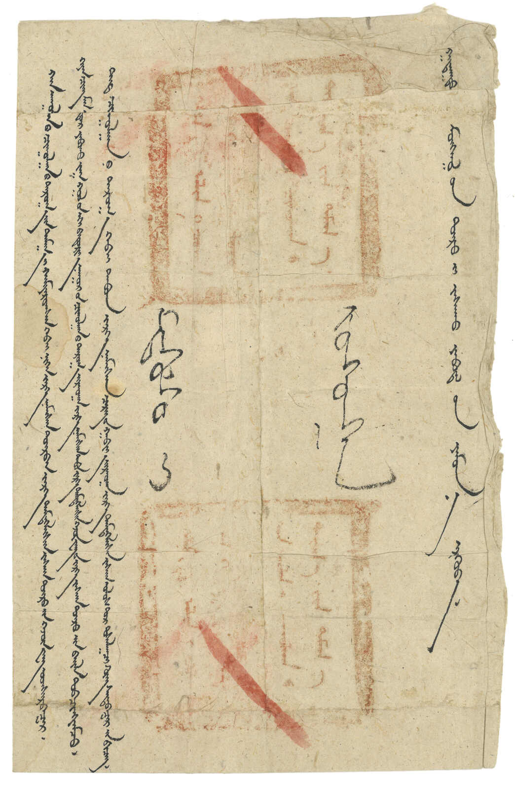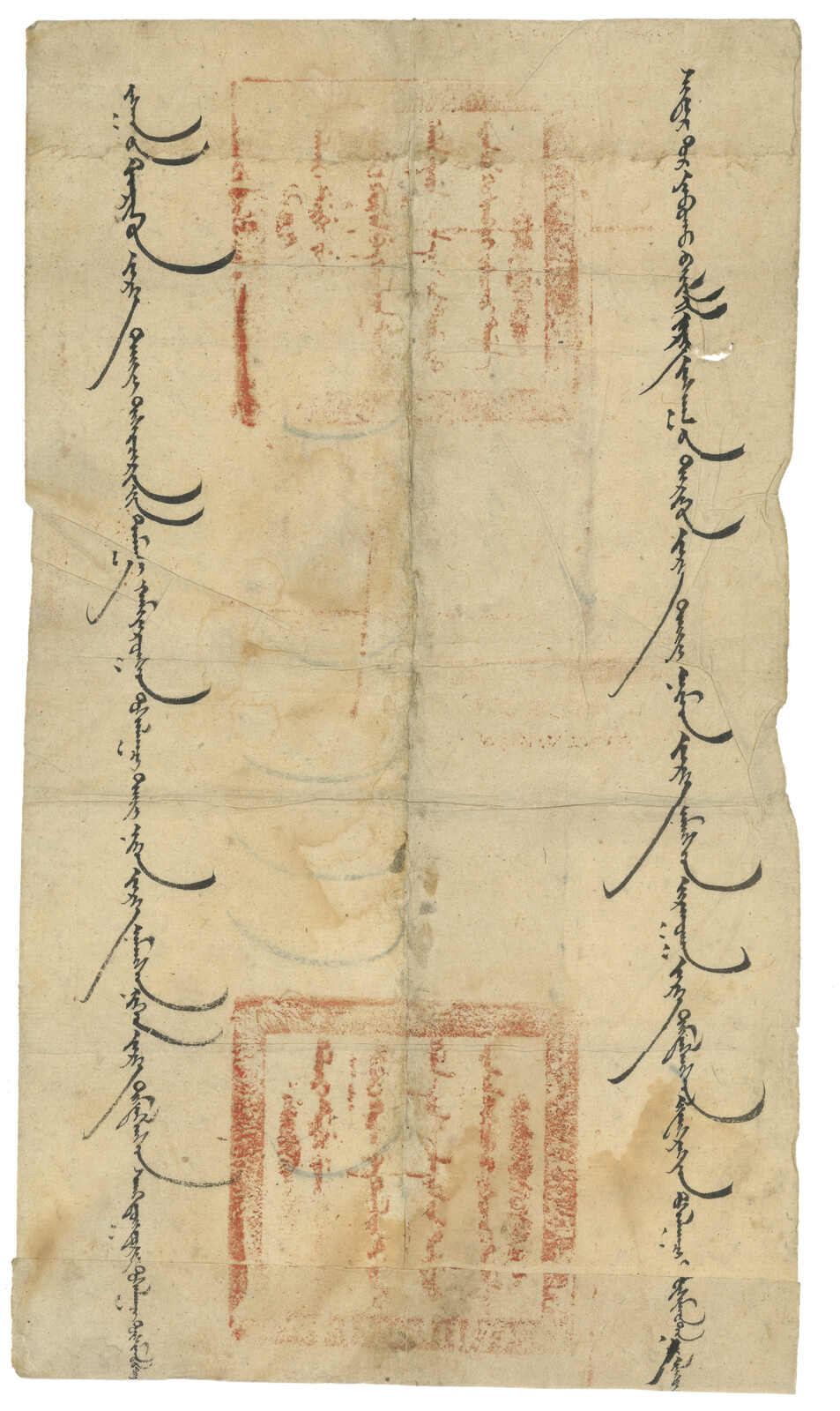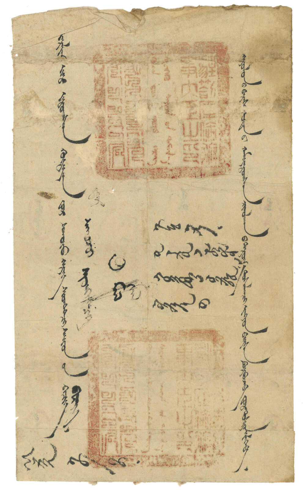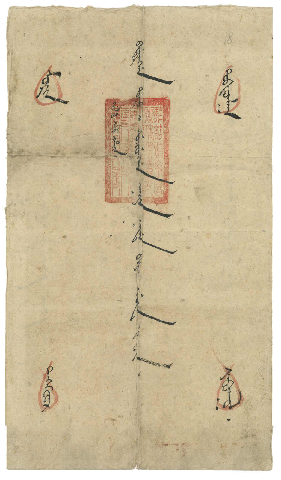 十八至二十世紀一組九件車臣汗之古代公文封,由蒙古驛站送遞,包含由同治至宣統年間之例子。十分豐富。部分附譯本。(Image 1)