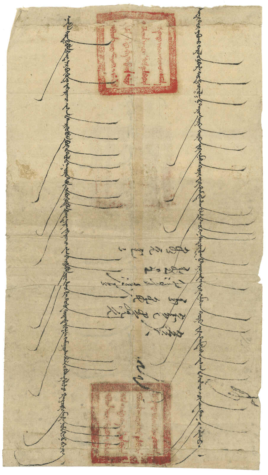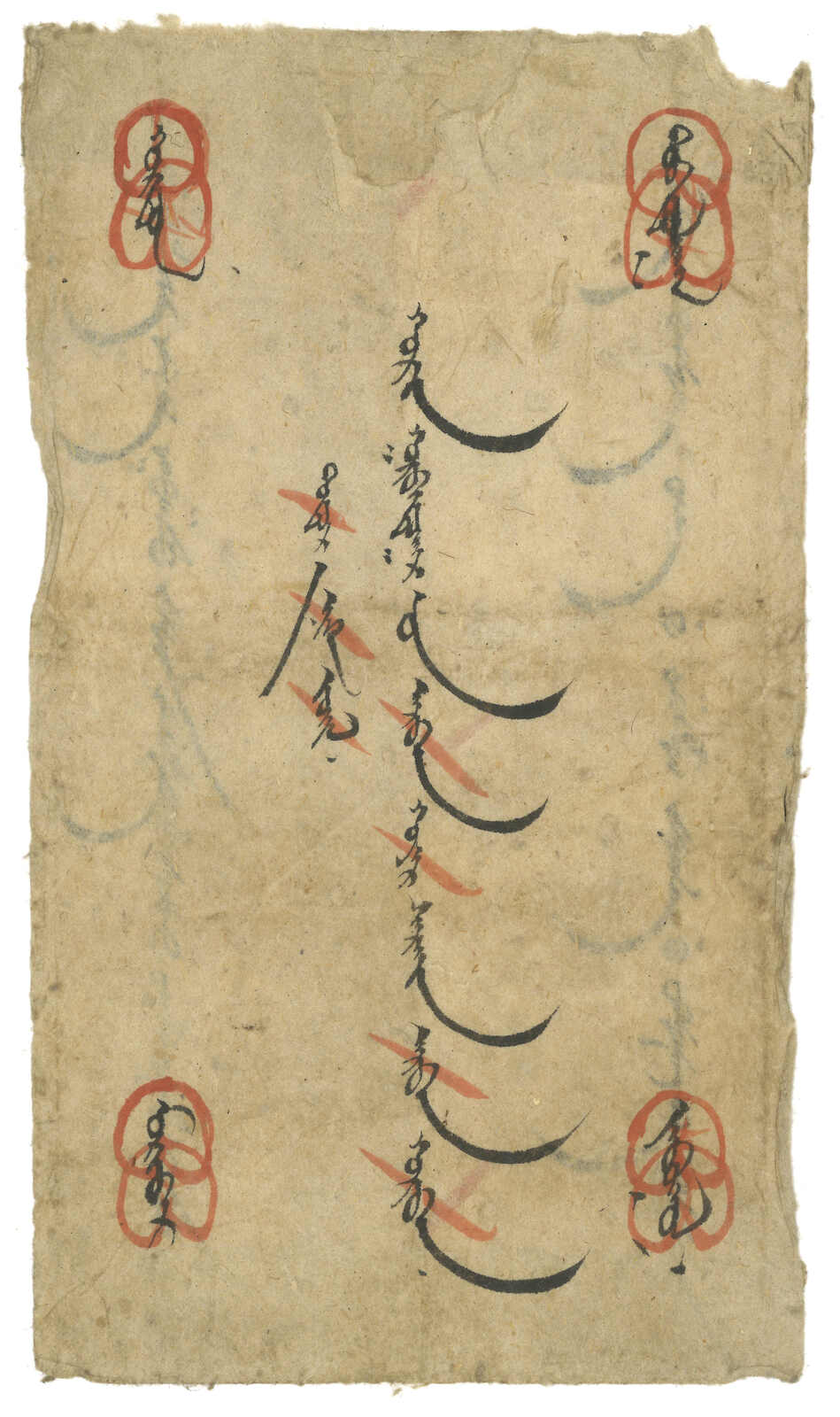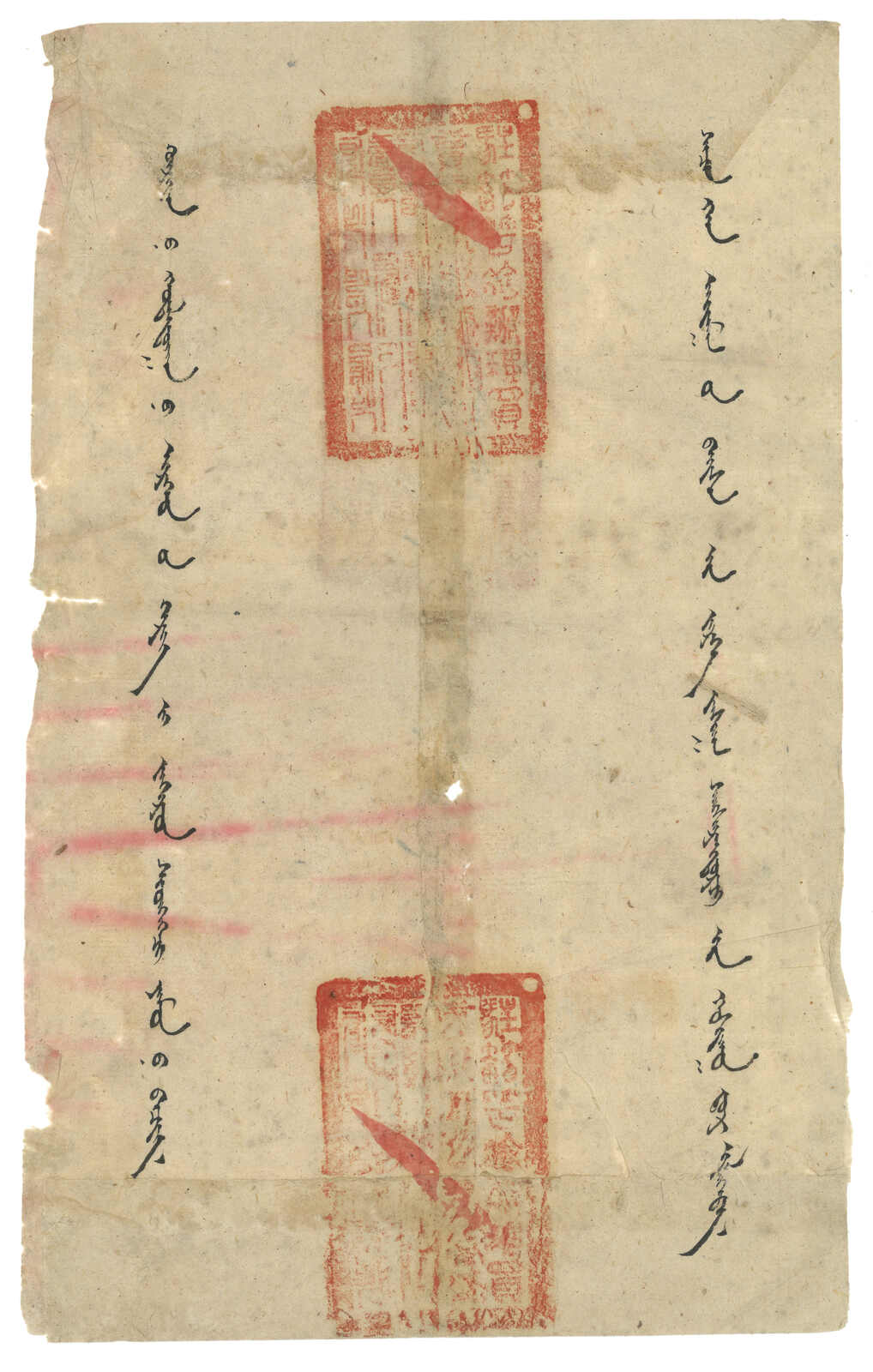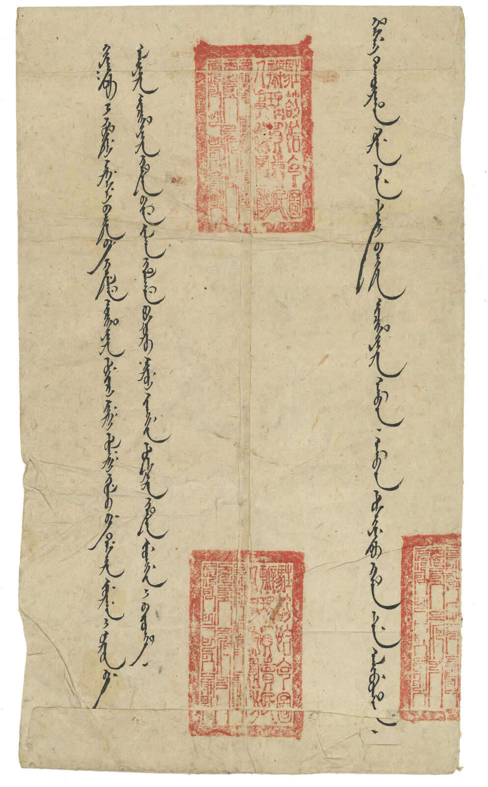 十八至二十世紀一組九件車臣汗之古代公文封,由蒙古驛站送遞,包含由同治至宣統年間之例子。十分豐富。部分附譯本。(Image 1)