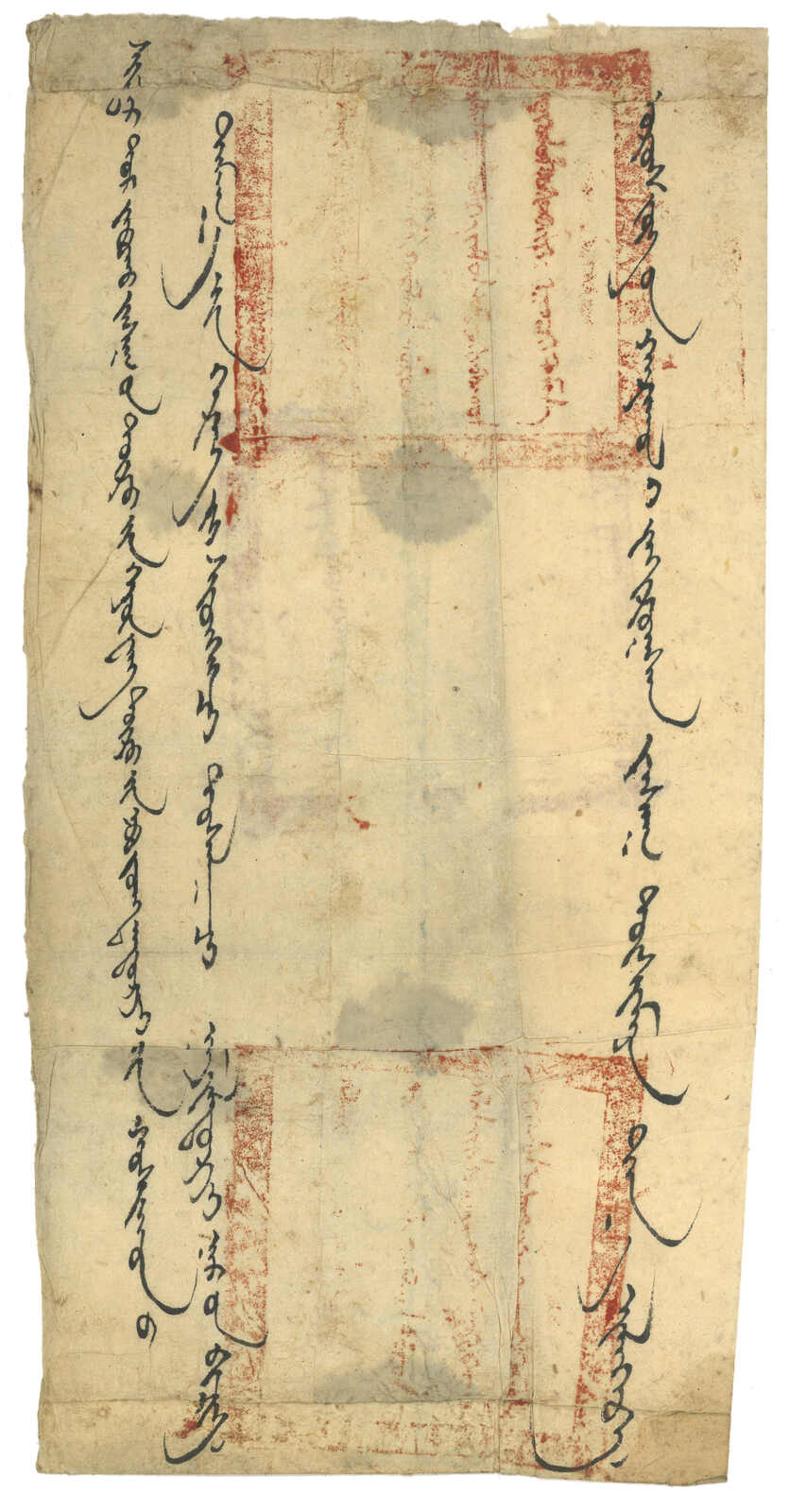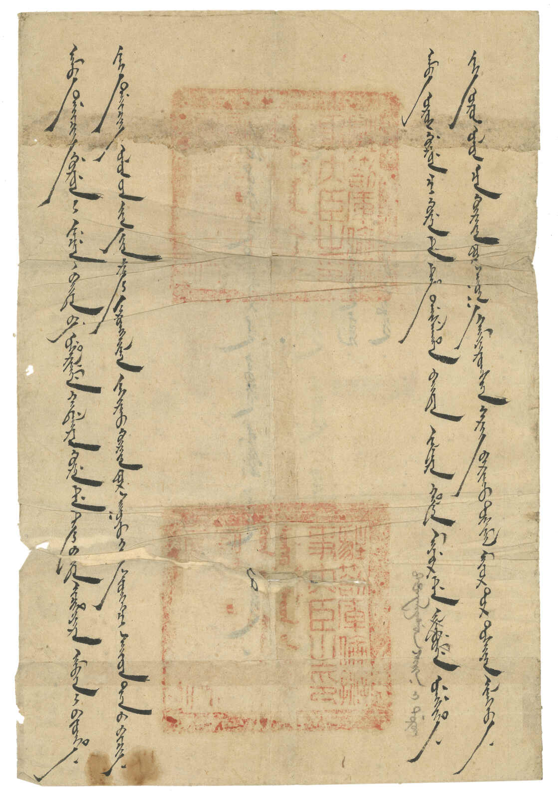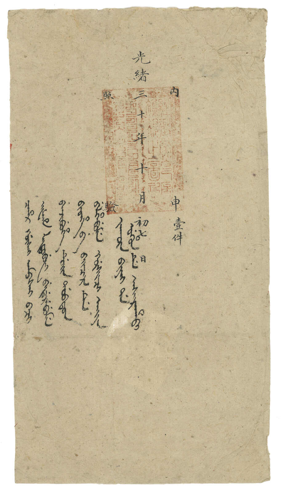 光緒二年(1876)大型公文封,鈐蒙文紅戳。(Image 1)
