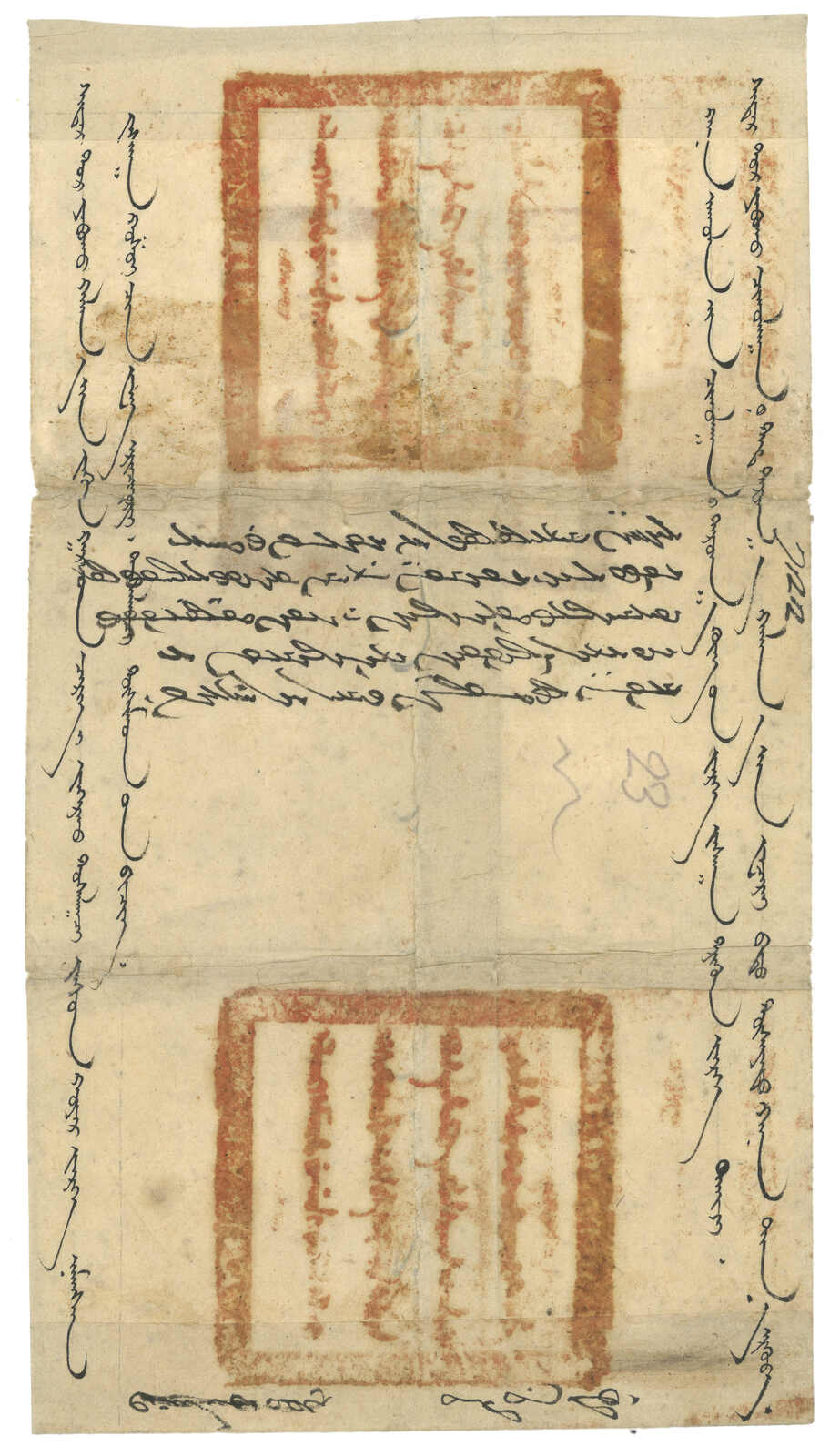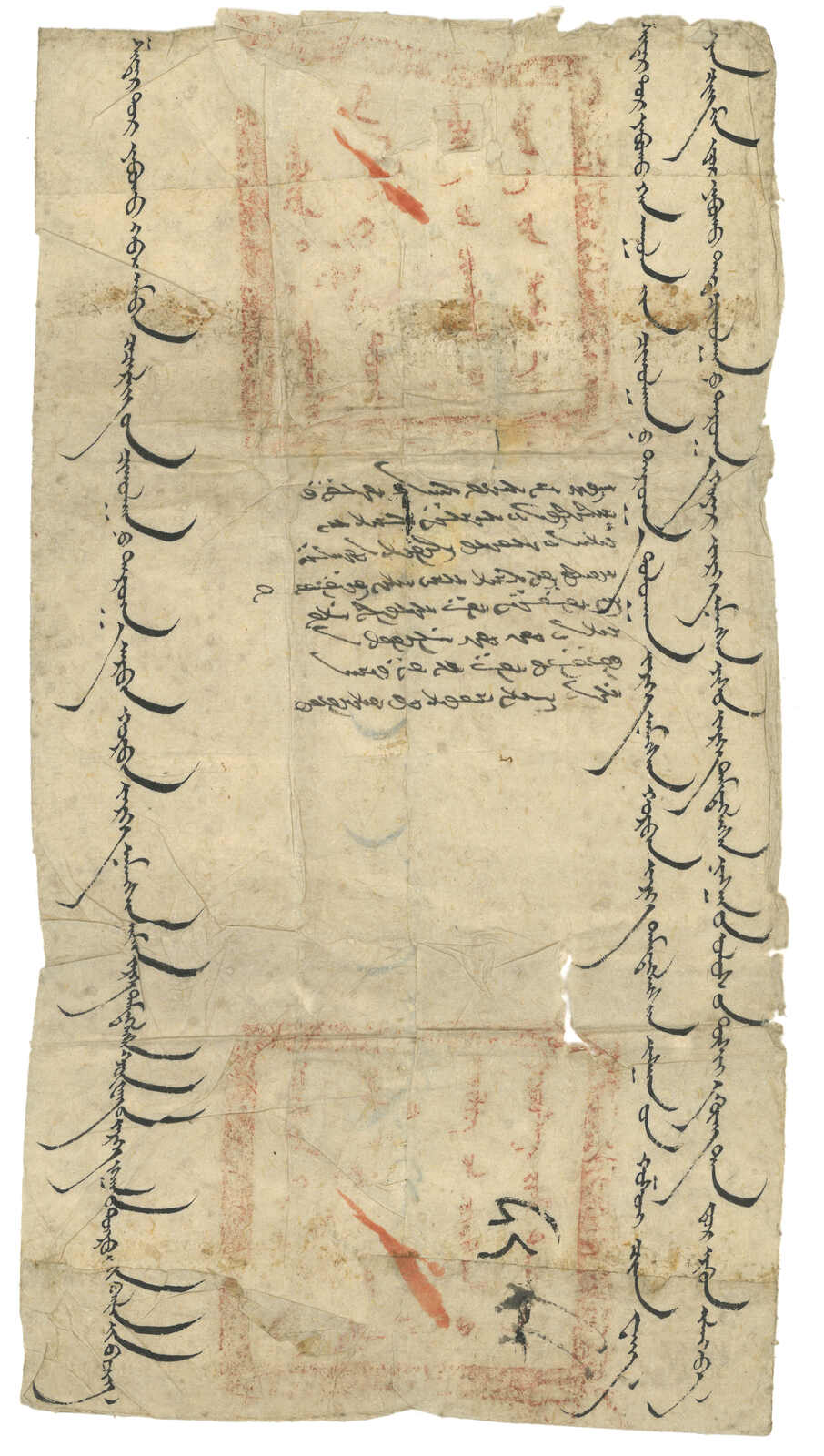 大型蒙文公文封,鈐恰克圖大臣官印。封有折。(Image 1)