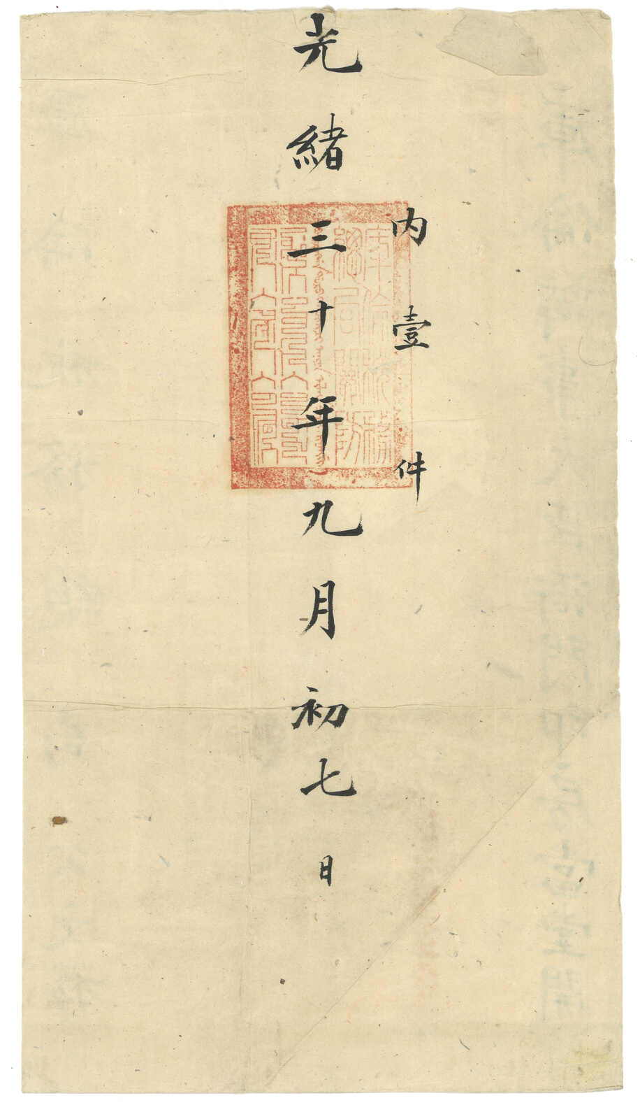 光緒三十年(1904)大型公文封,由庫倫稅務總局寄庫倫大臣,鈐紅色官印。(Image 1)