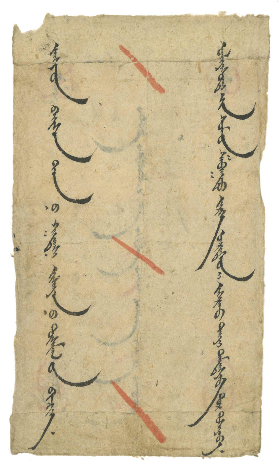 ca 19th century Mongolian “Bird Cover”, written in Mongolian with a handdrawn bird to indicate the high emergency of the mail. Extremely scarce early Mongolian express offical covers.
