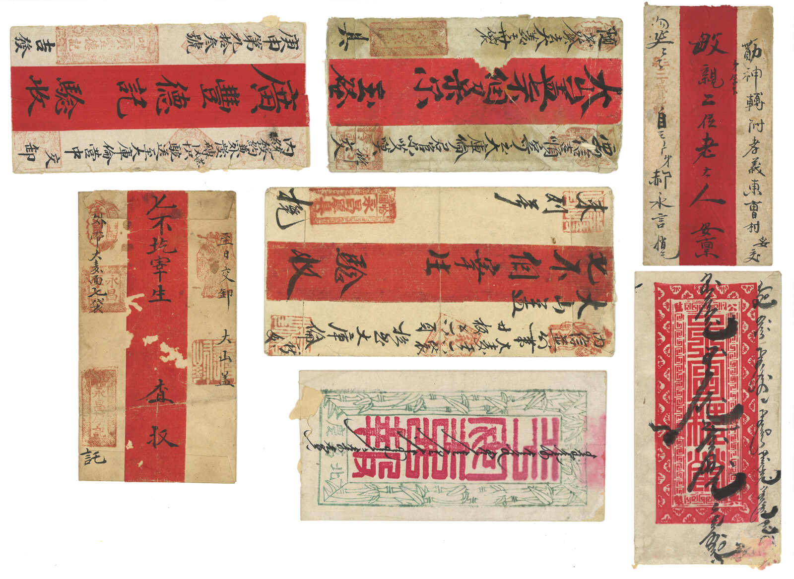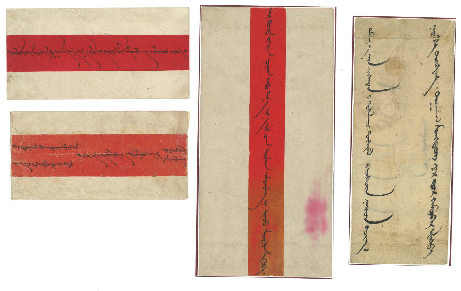 1900-1920s a collection of about 20 red band covers, receipts and customs pass used in Mongolian, reflecting the operation of Urtuu and Min chu as well as the living of Chinese merchants. Please view.