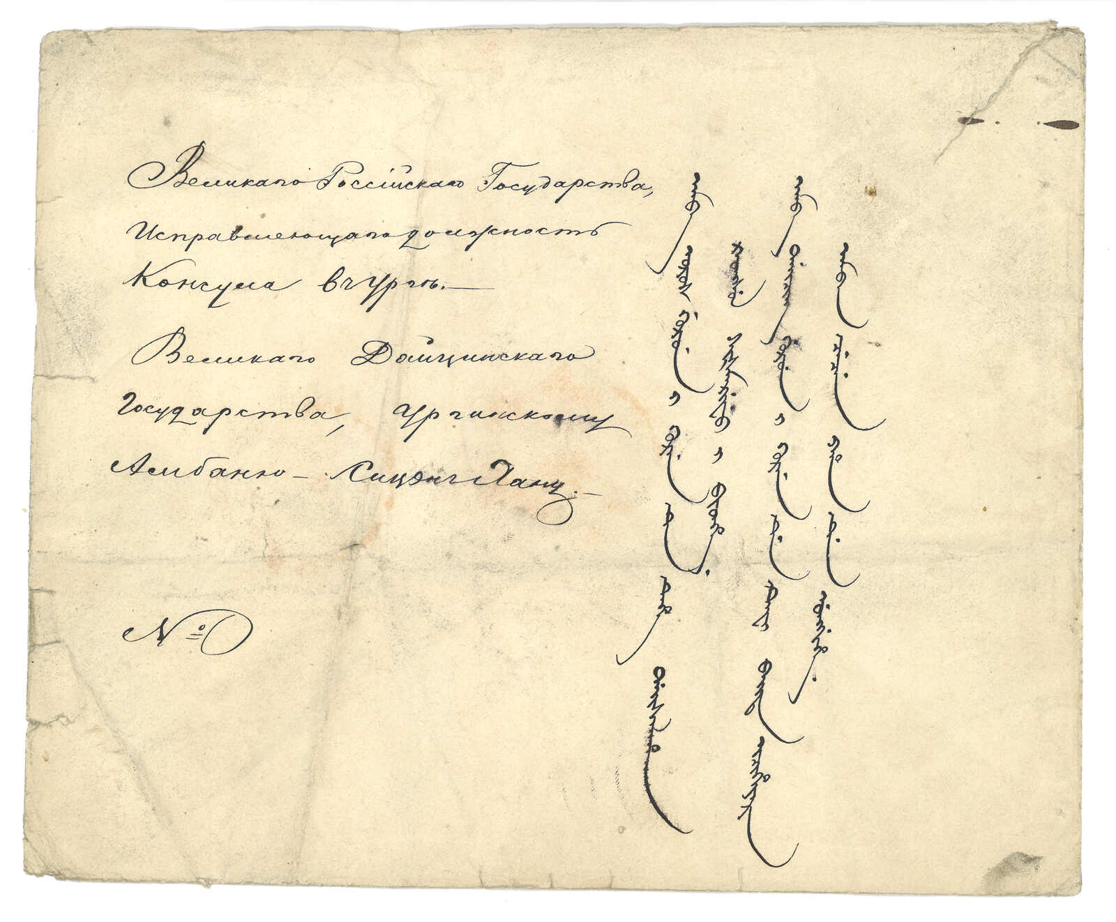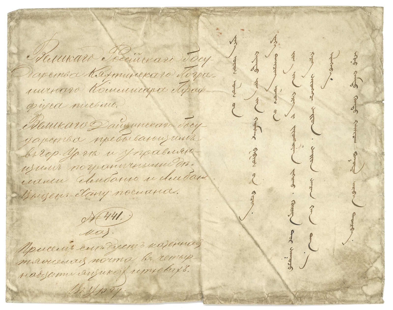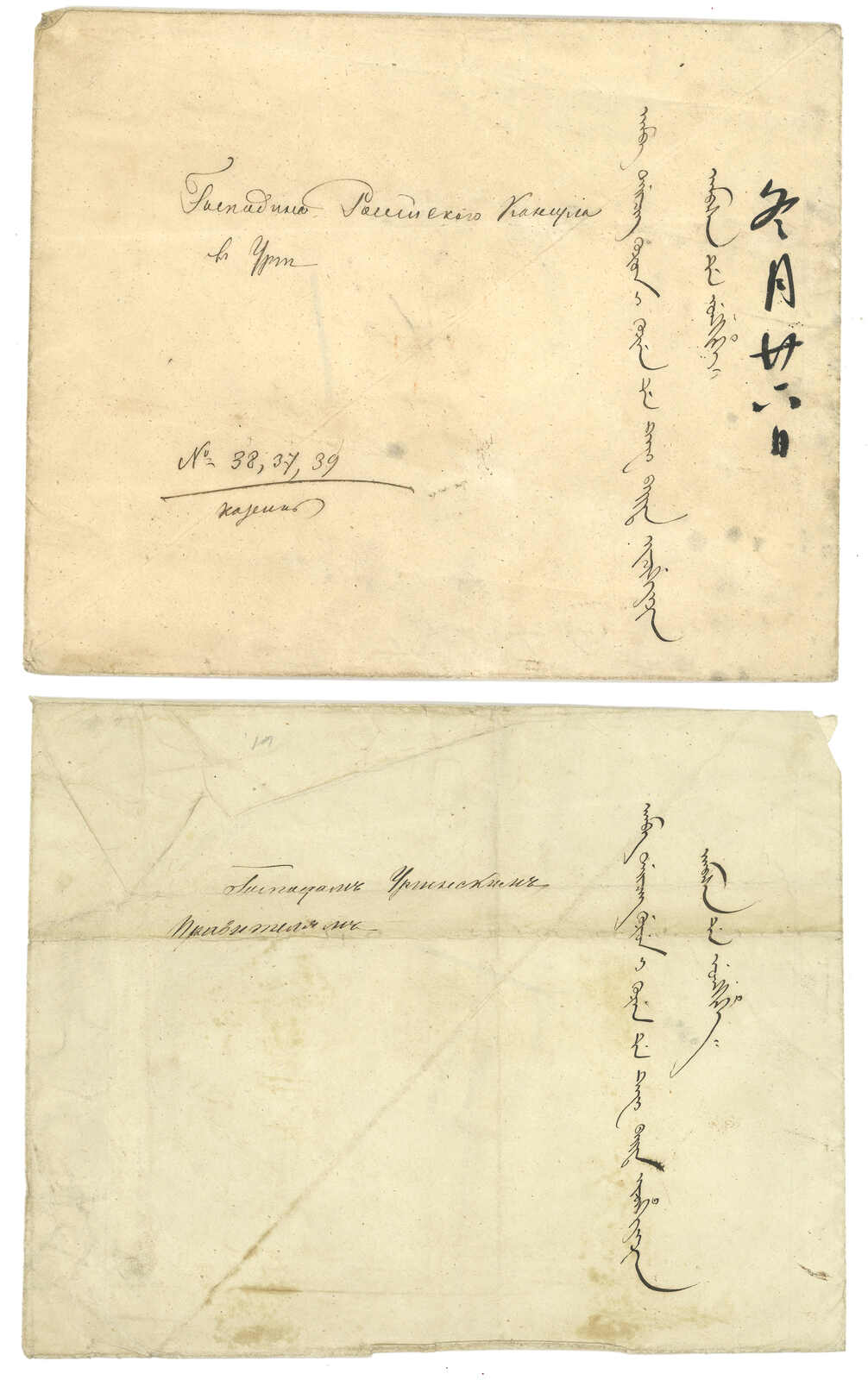 ca 1860s official diplmatic cover from Kiachta to Urga, applied with Kiachta Russian wax seal on reverse. Probably the earliest mail from Kiachta.