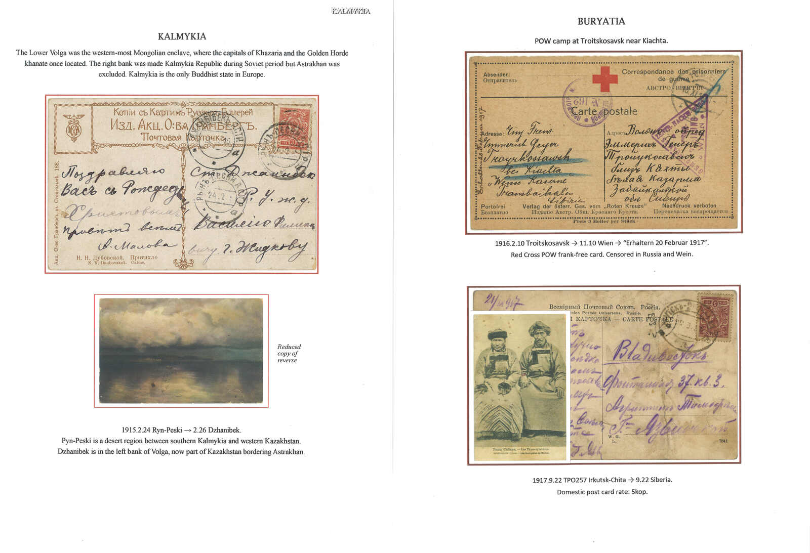 1915-1917 a group of 3 postcards from Buryatia and Kalmykia, frankless or f.w. Coat of Arms singles, tied by TPO No. 257, Troitskosavsk or Ryn-Peski cds.