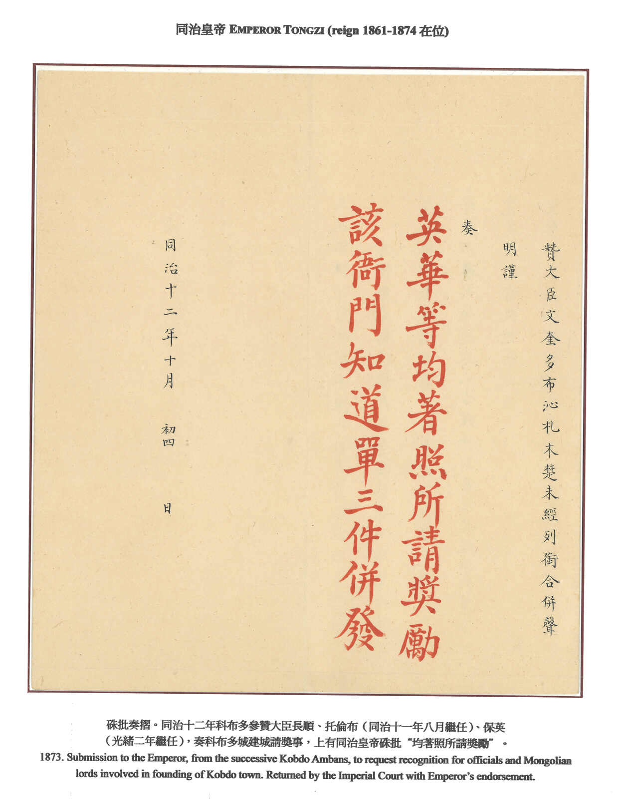 1870至1900年代一組三件往來科布多大臣之蒙古郵驛咨片及硃批奏折。(Image 1)