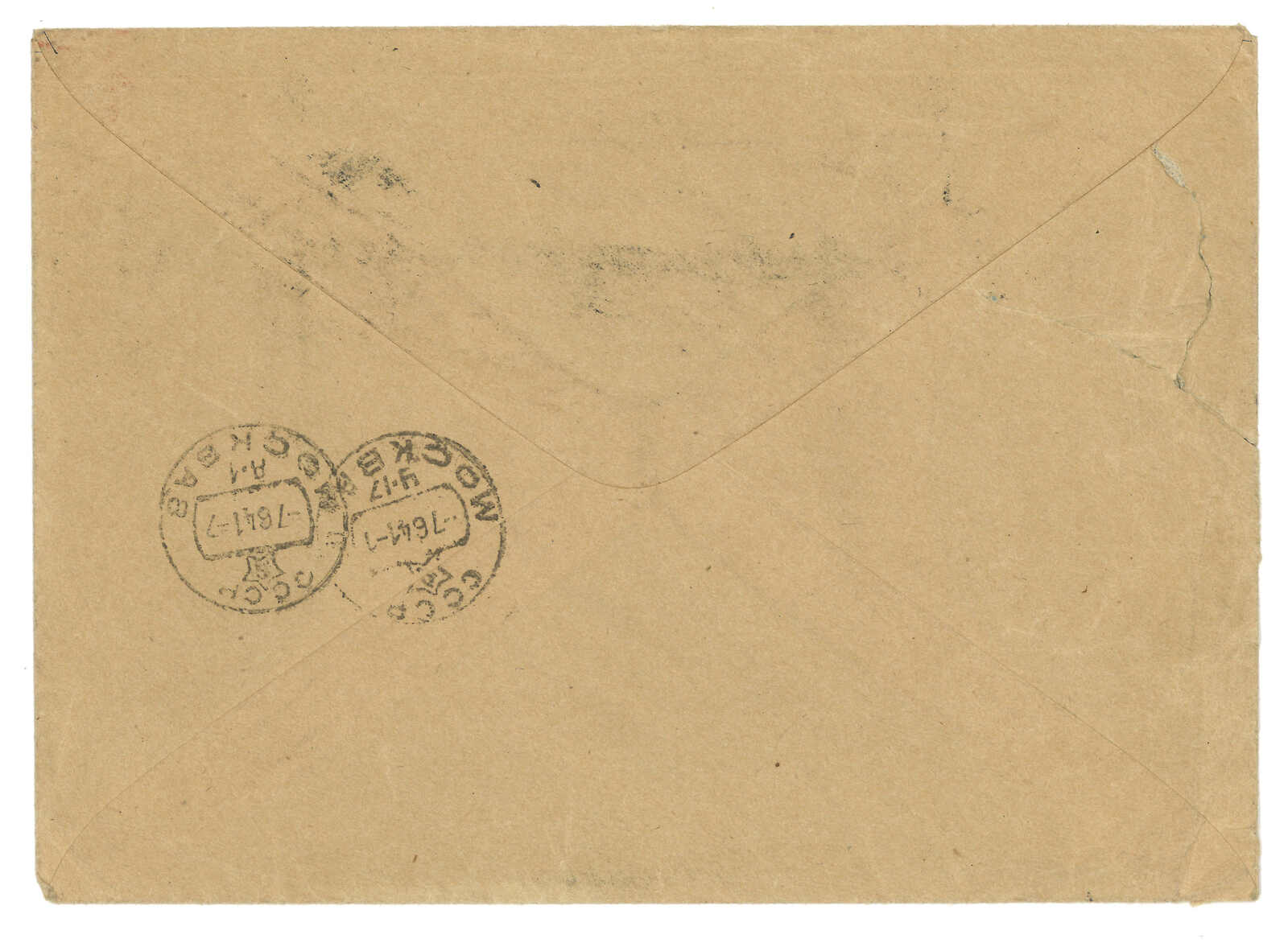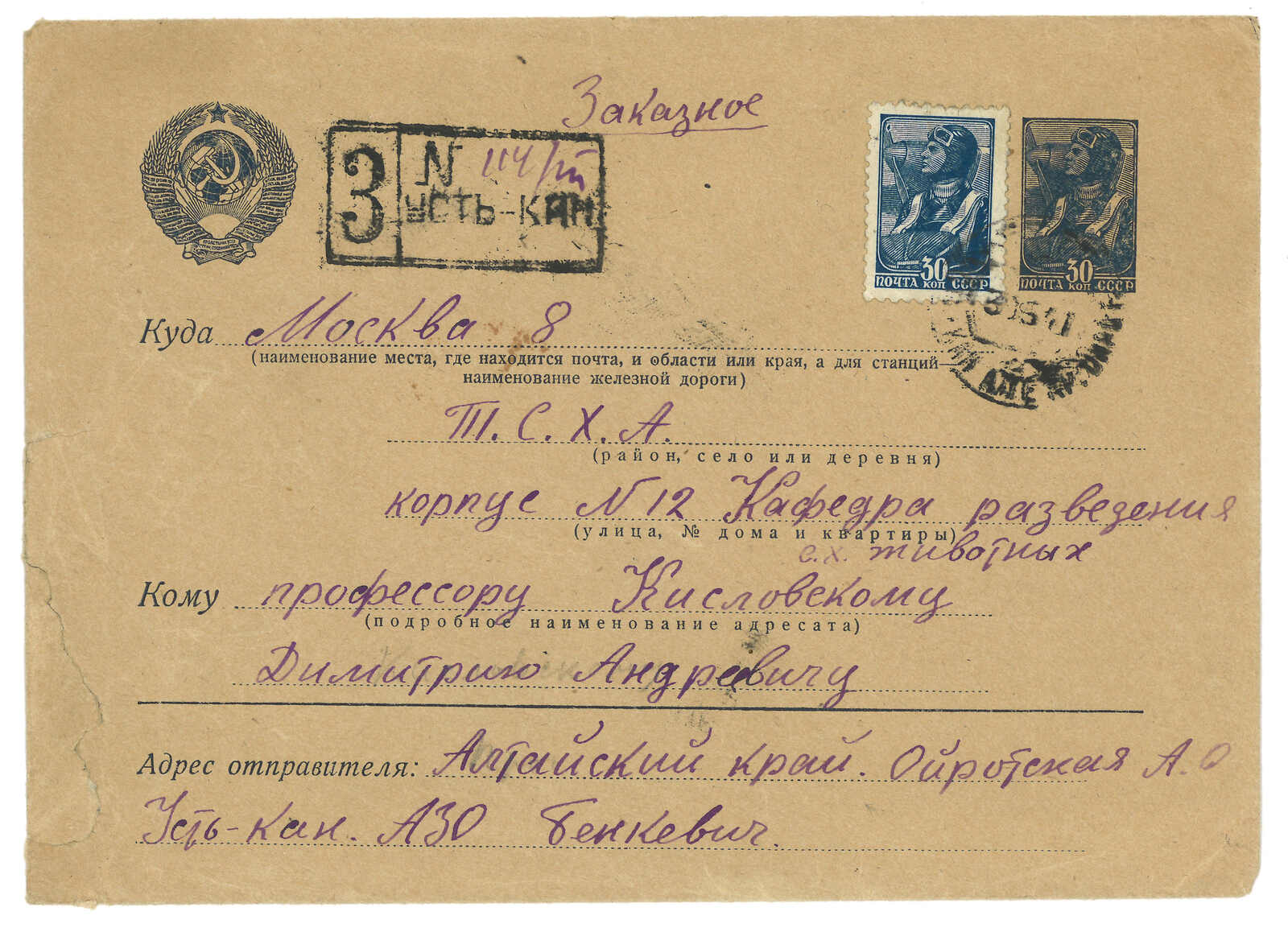蘇聯30戈比郵資封自阿爾泰地區Ust-Kan寄莫斯科,加貼30戈比,旁鈐Ust-Kan掛號章。6.7抵莫斯科。(Image 1)