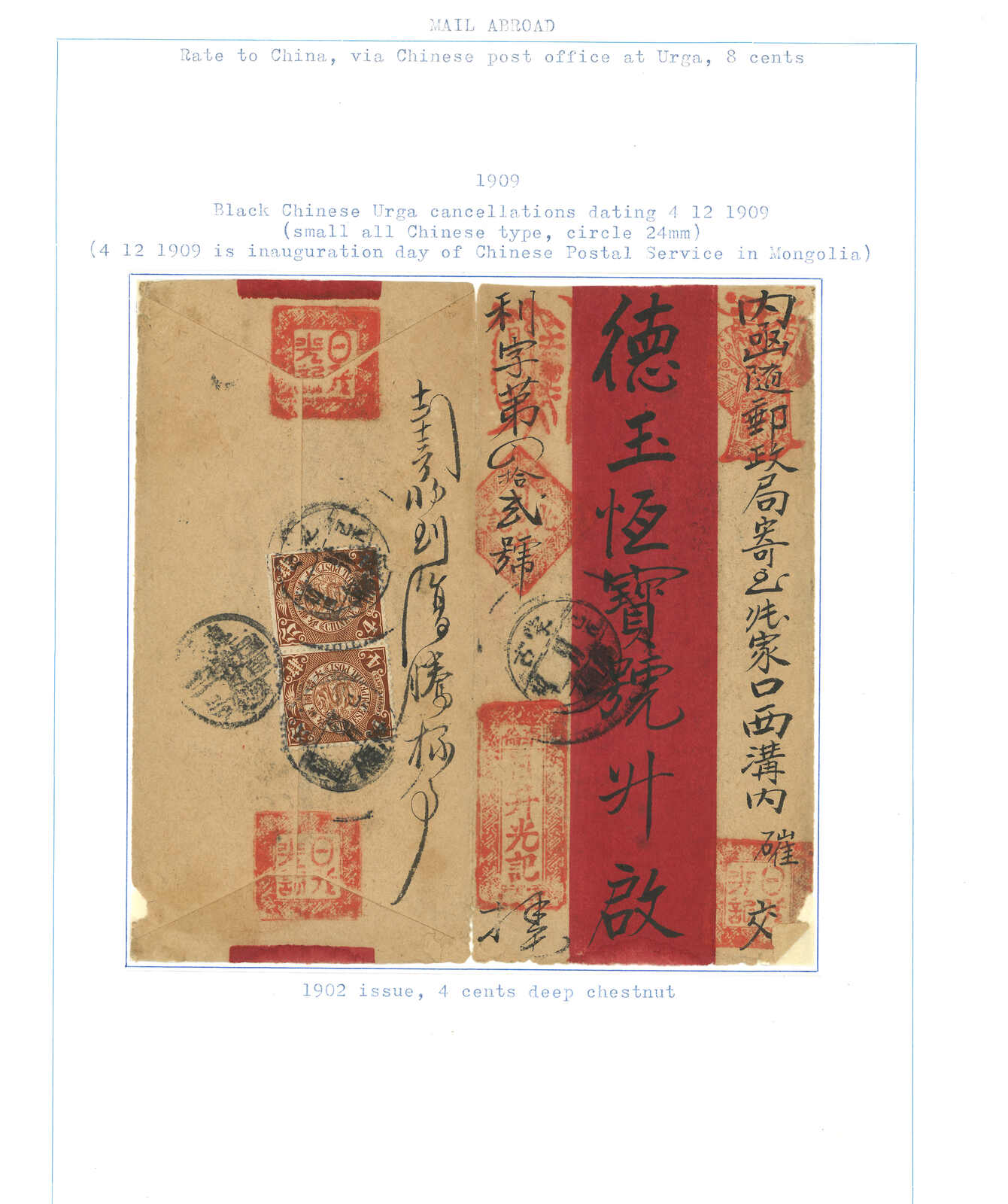 out for display. Illustration fig 55, p.105 in “The Postal History of Mongolia 1841-1941” by W.C. Hellrigl. With original exhibit page. Extremely historical.