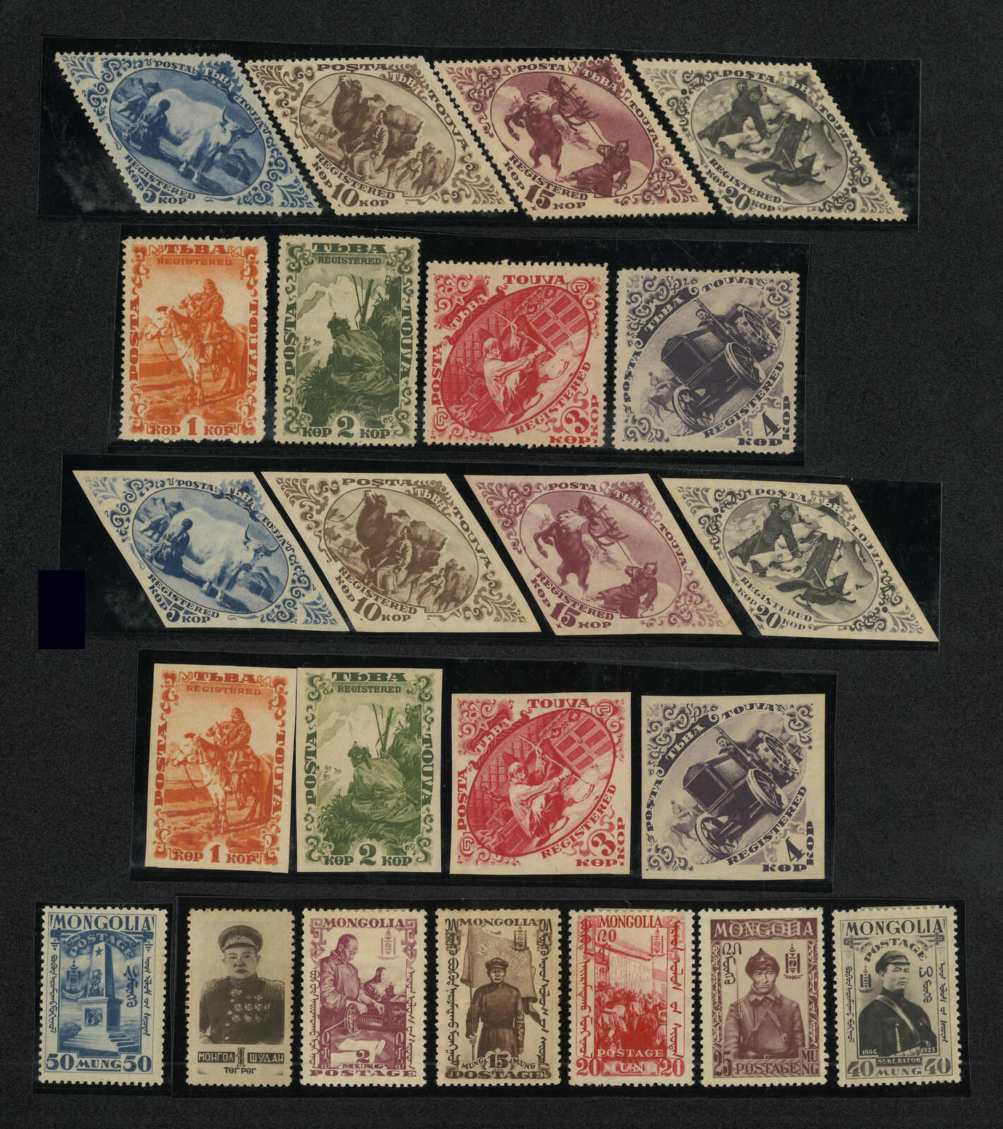 1930s collection of 4 sets of Touva and Mongolian stamps, all mint.