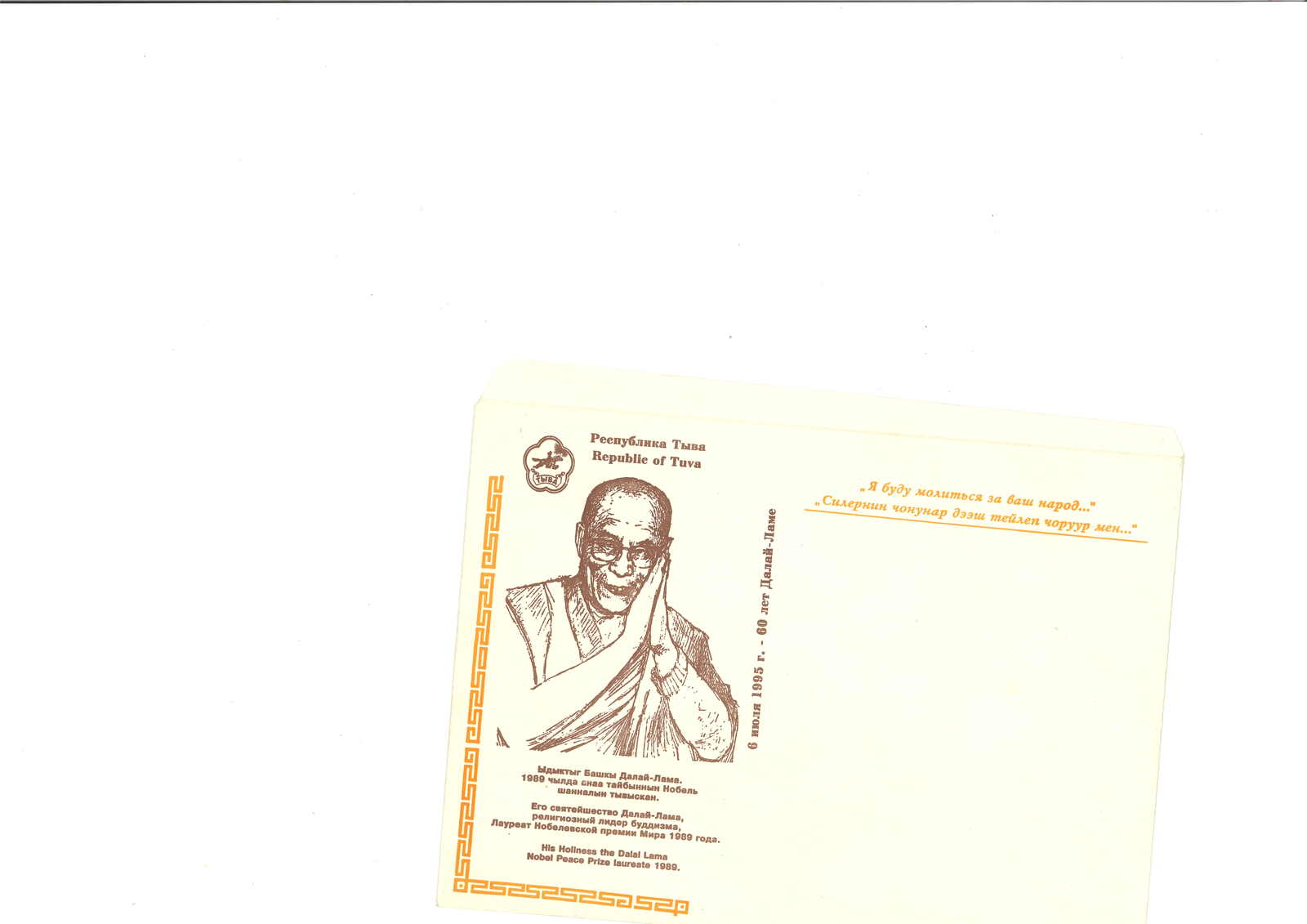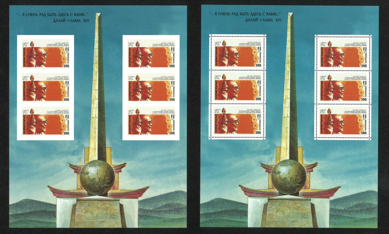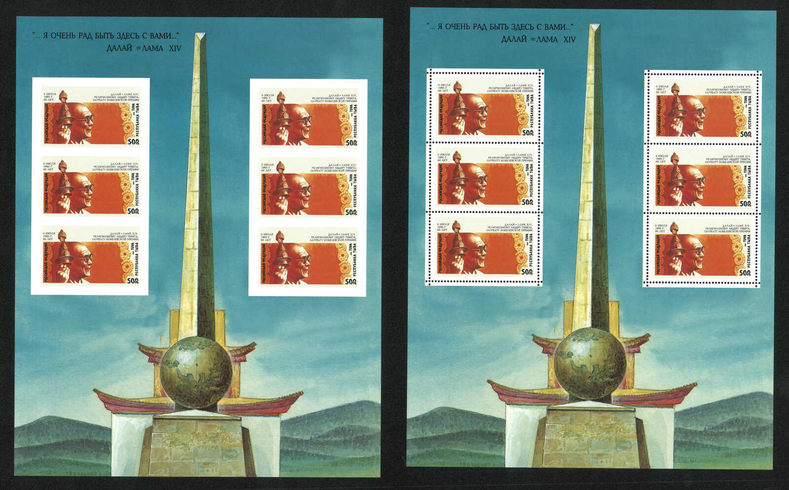 1995年圖瓦共和國達賴喇嘛六秩誕辰灰姑娘小型張新一組四張,無貼。(Image