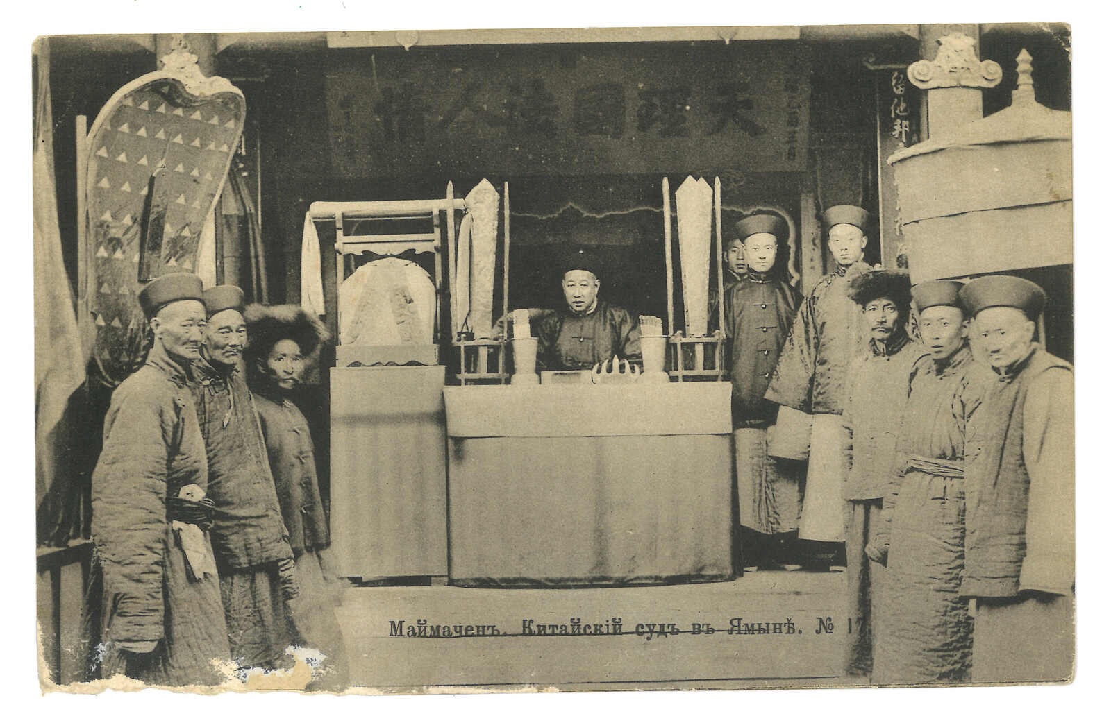 買賣城(阿勒坦布拉格)衙門圖片明信片,可見“天理國法人情”碑匾。左下角有損。未使用。(Image 1)