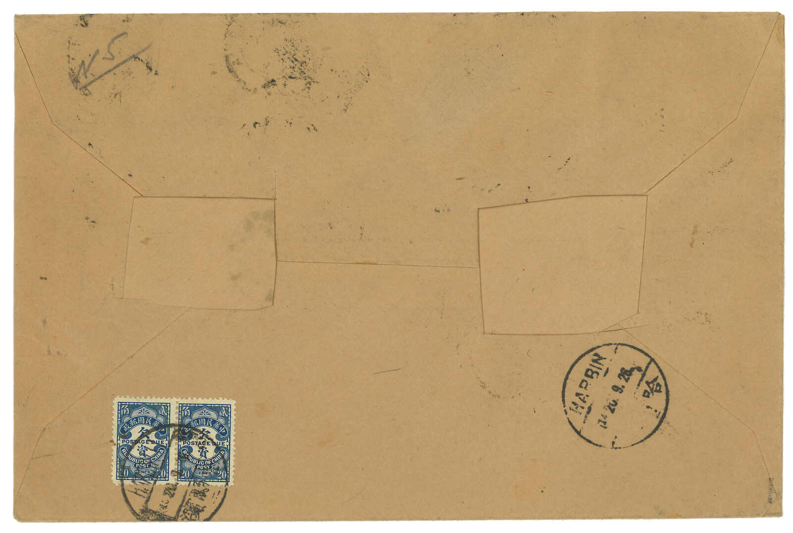 pair on reverse, tied by Harbin (20 Sep) cds. Wax-seal removed.
