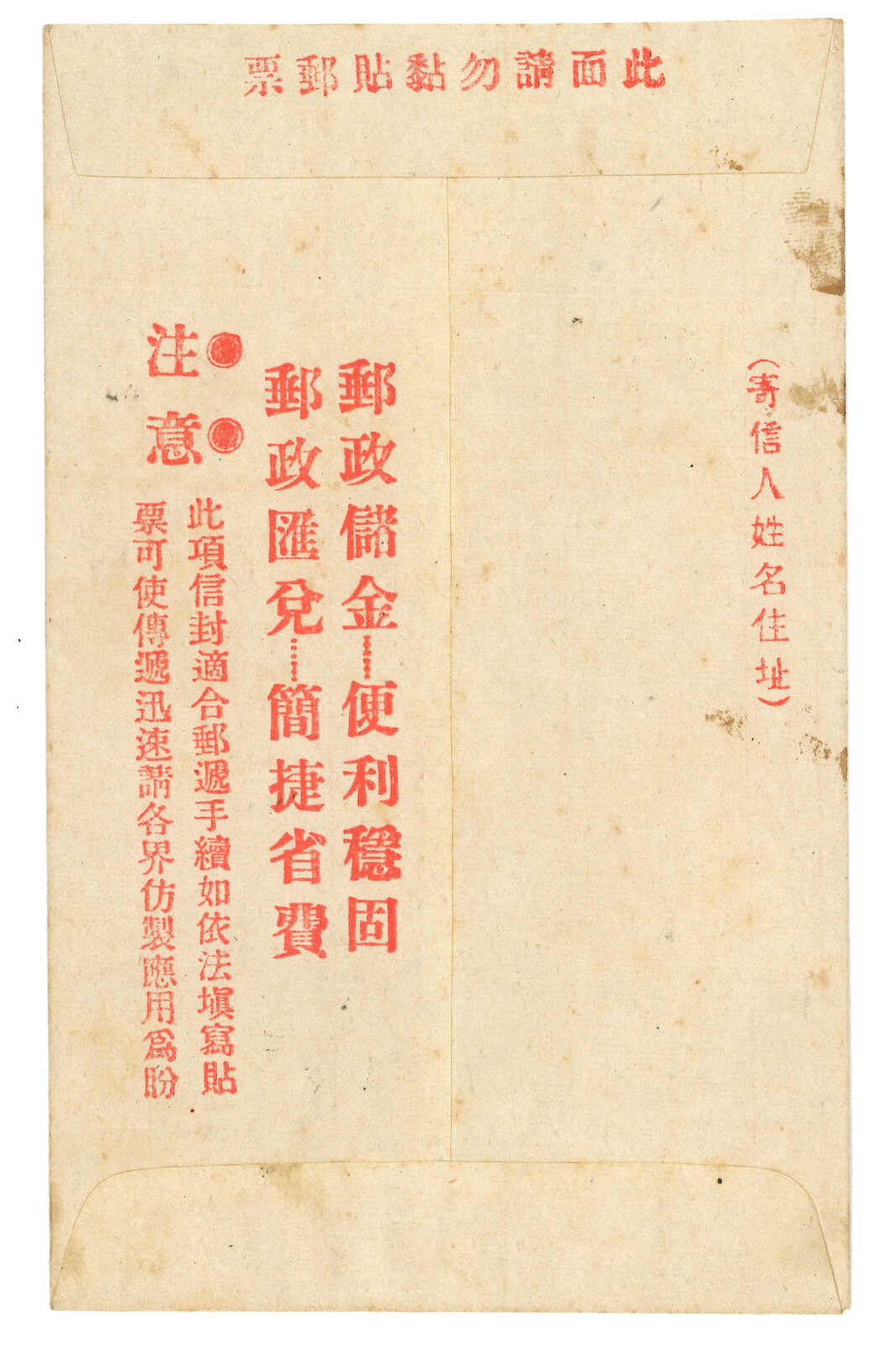 1931.10.32 (日期誤植,可能為10.22)烏蘭巴托寄張家口。中式封,背貼印花稅票改值5 menge無齒票 + 一枚掉票,銷烏蘭巴托日戳。加貼民國欠資票2角 +