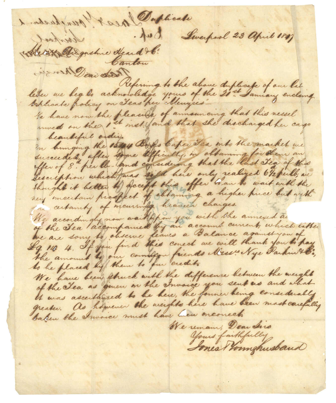 1848.4.21 廣州寄倫敦Frederick Huth &