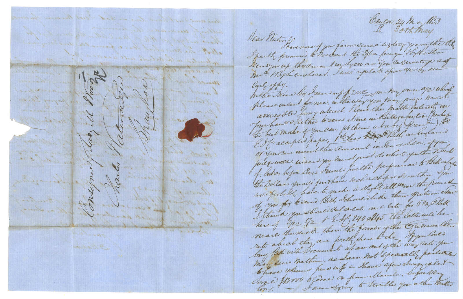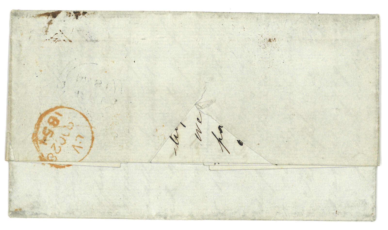 1853.5.22 廣州旗昌洋行寄蘇格蘭William Leslie。郵簡,寫有“via
