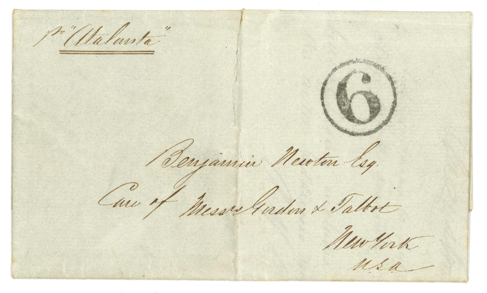Atalanta”及“6”郵資。此信先是私人送遞至美國。封中折。(Image 1)