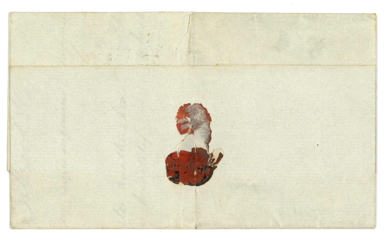 1853.2.8 廣州寄美國。郵簡,鈐“VIA MARSEILLES”橫戳。私人送遞故無郵戳。(Image 1)