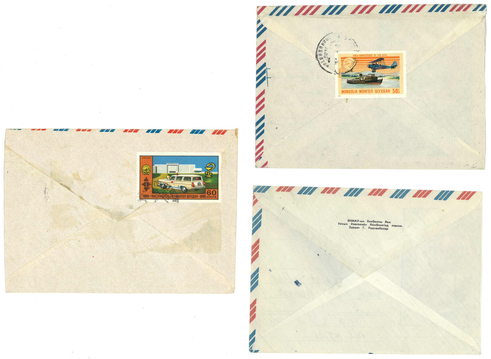 1970年代一組八件出自蒙古地方郵局之信封,貼多套紀念票。(Image 1)