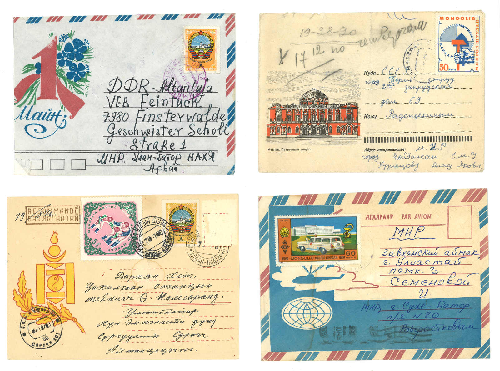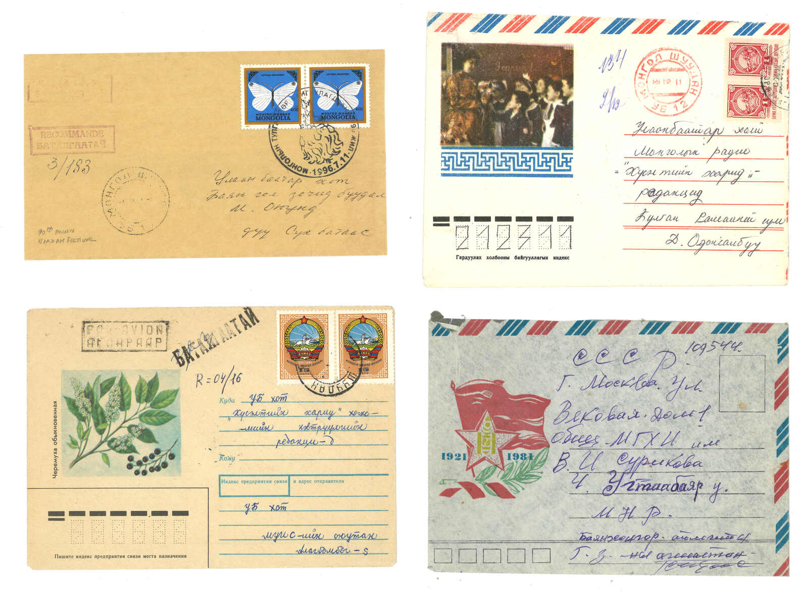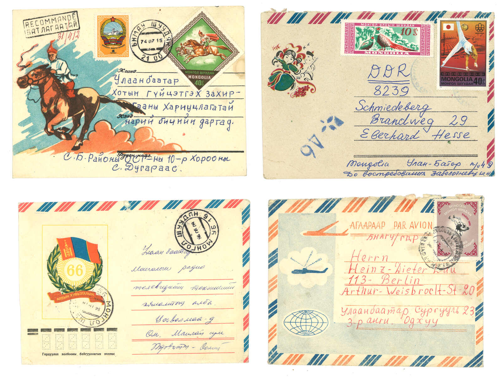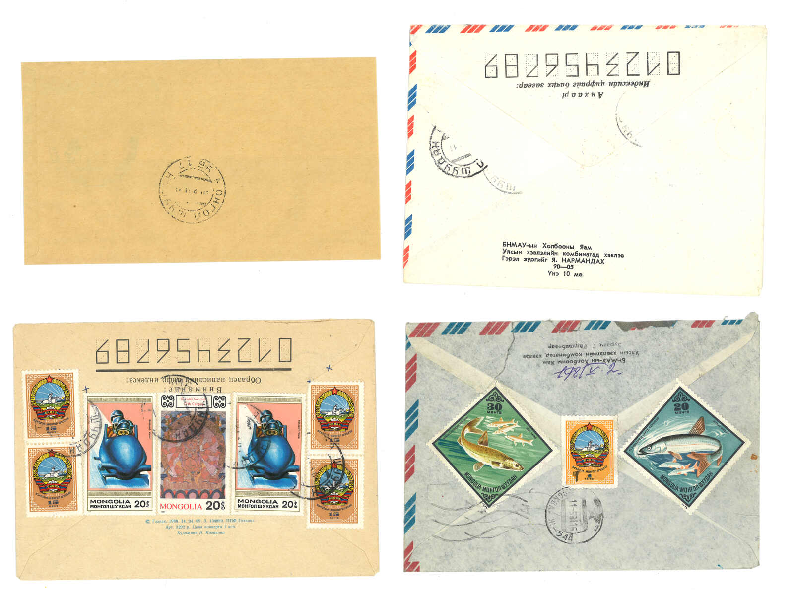 1970s a group of 8 covers and postcards from Mongolian local post offices, f.w. various types of commemorative issues.