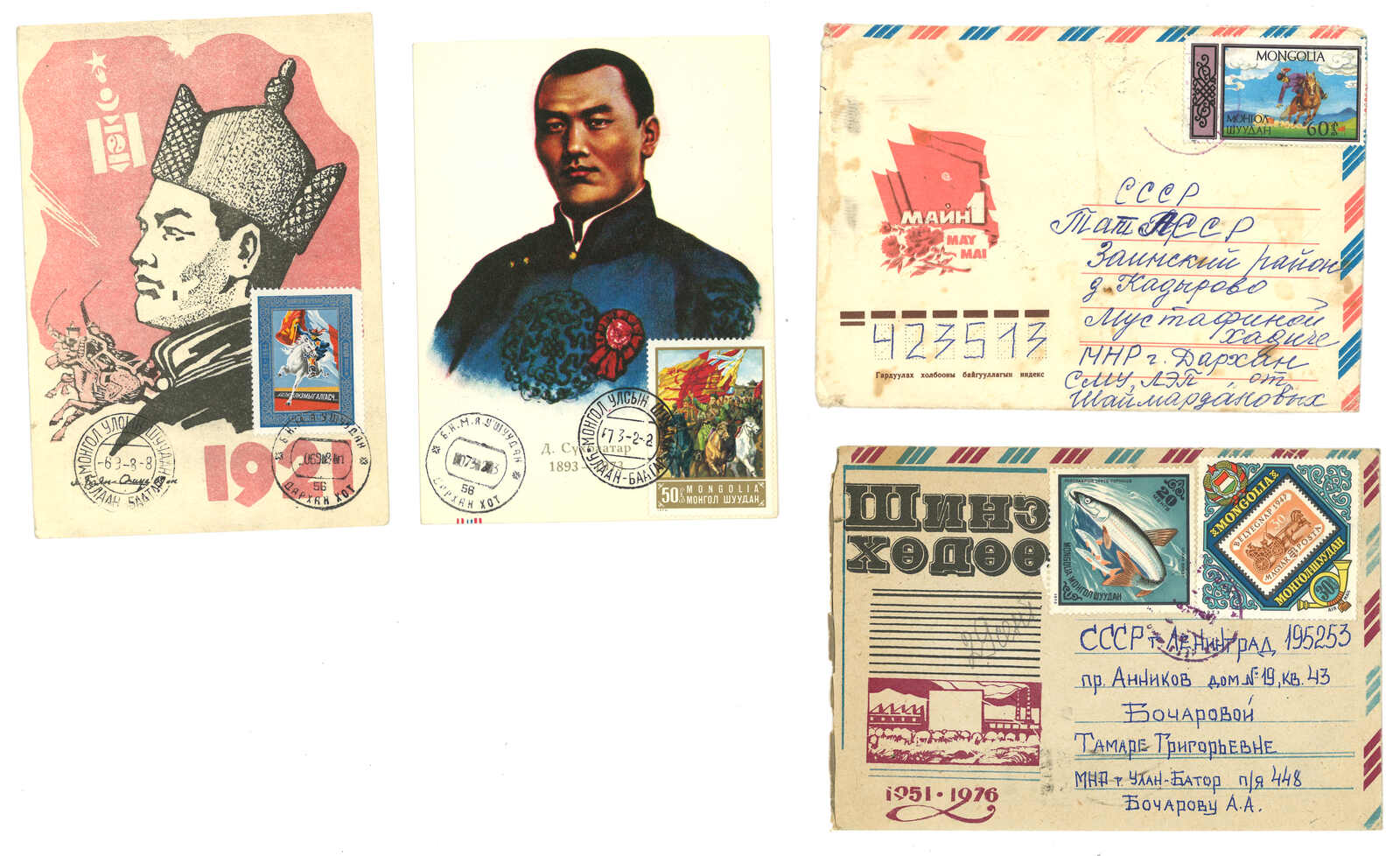 1960s a group of 3 Mongolian illustrative covers, including "60th D Natsagdorj's Birthday", "100th Lenin's Birthday" etc, plus a D Natsagdorj's portrait PPC. One commerically used.