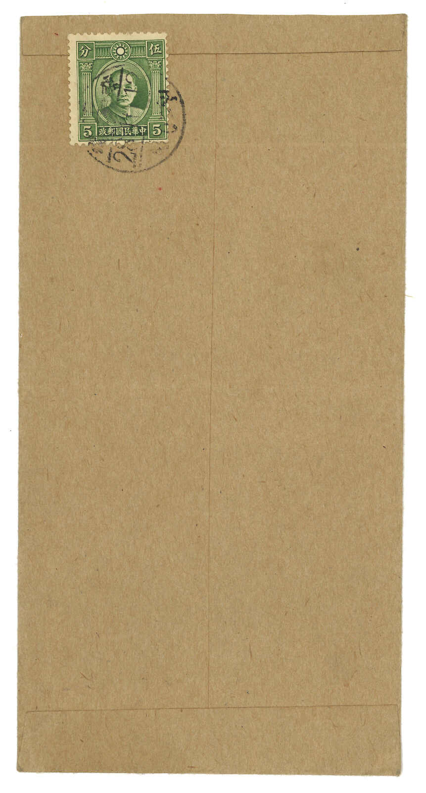 1939.10.12 旗下營寄崞縣,背貼孫像5分,銷旗下營日式日戳。貼用無加蓋孫像票之例子。(Image 1) (Image 2)