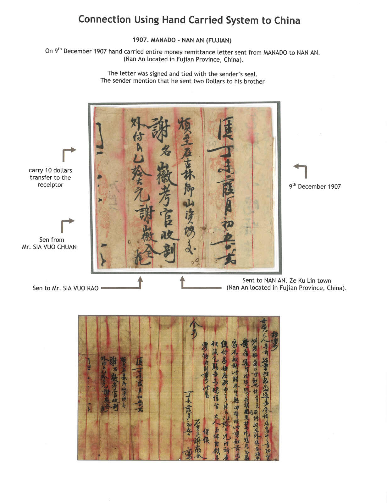 1907 (9 Dec) Qiaopi (money remittance letter) from Manado, Dutch East Indies to Nanan, frankless, with no postmark or manuscript of the courier. The content mentioned that 2 dollars were sent.