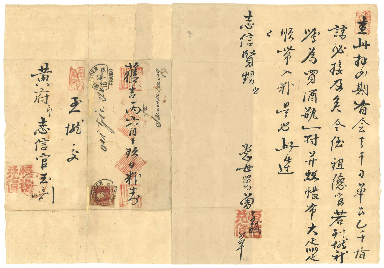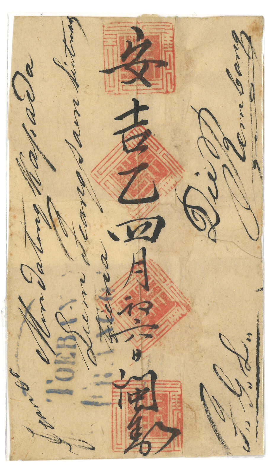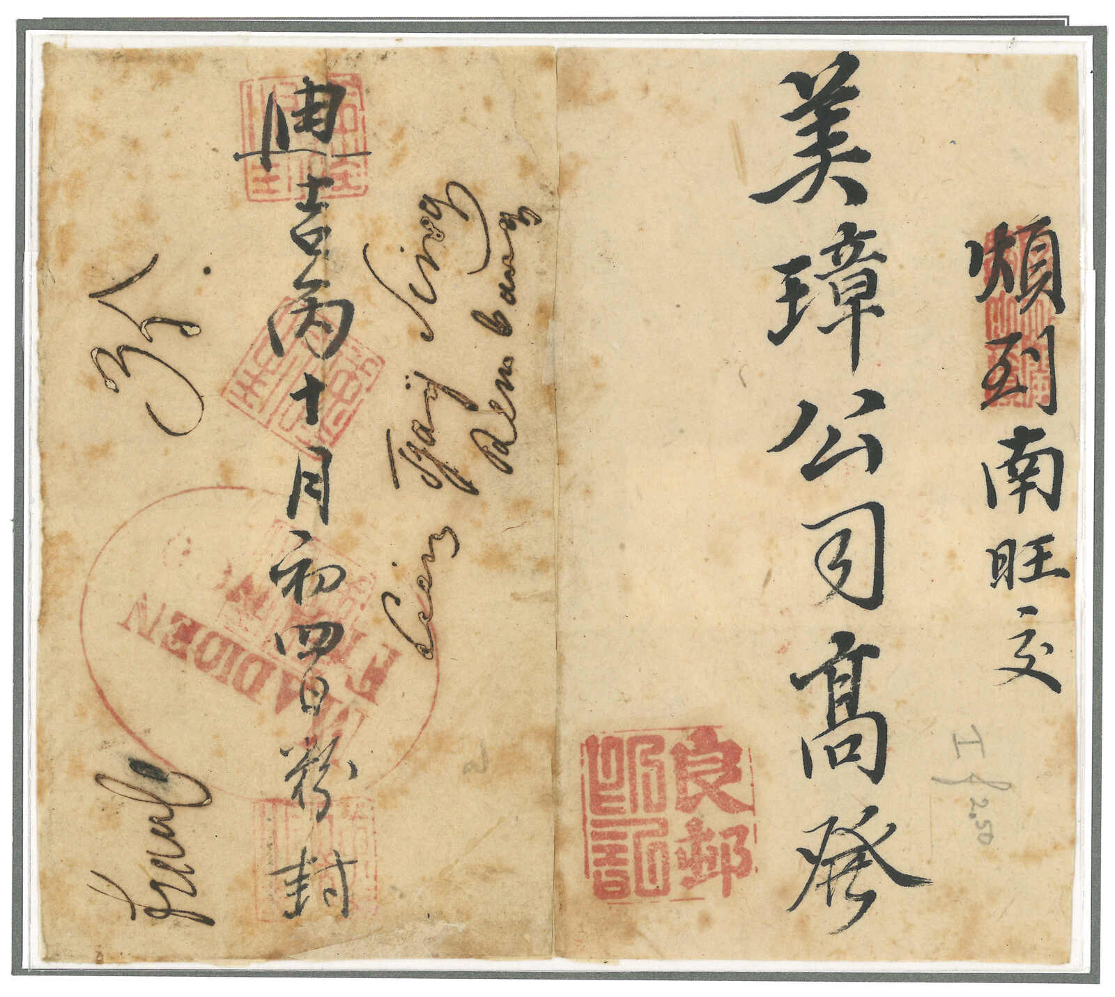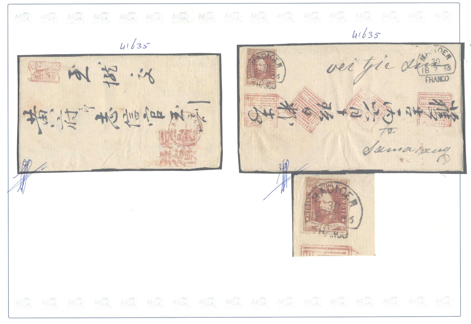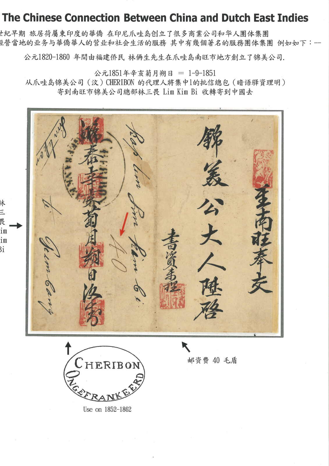 橢圓形戳記等郵戳。當時小地方的華僑先將批款寄往南旺,南旺的批局再寄回中國。一組十分難得的早期荷屬東印度僑批。(Image 1)