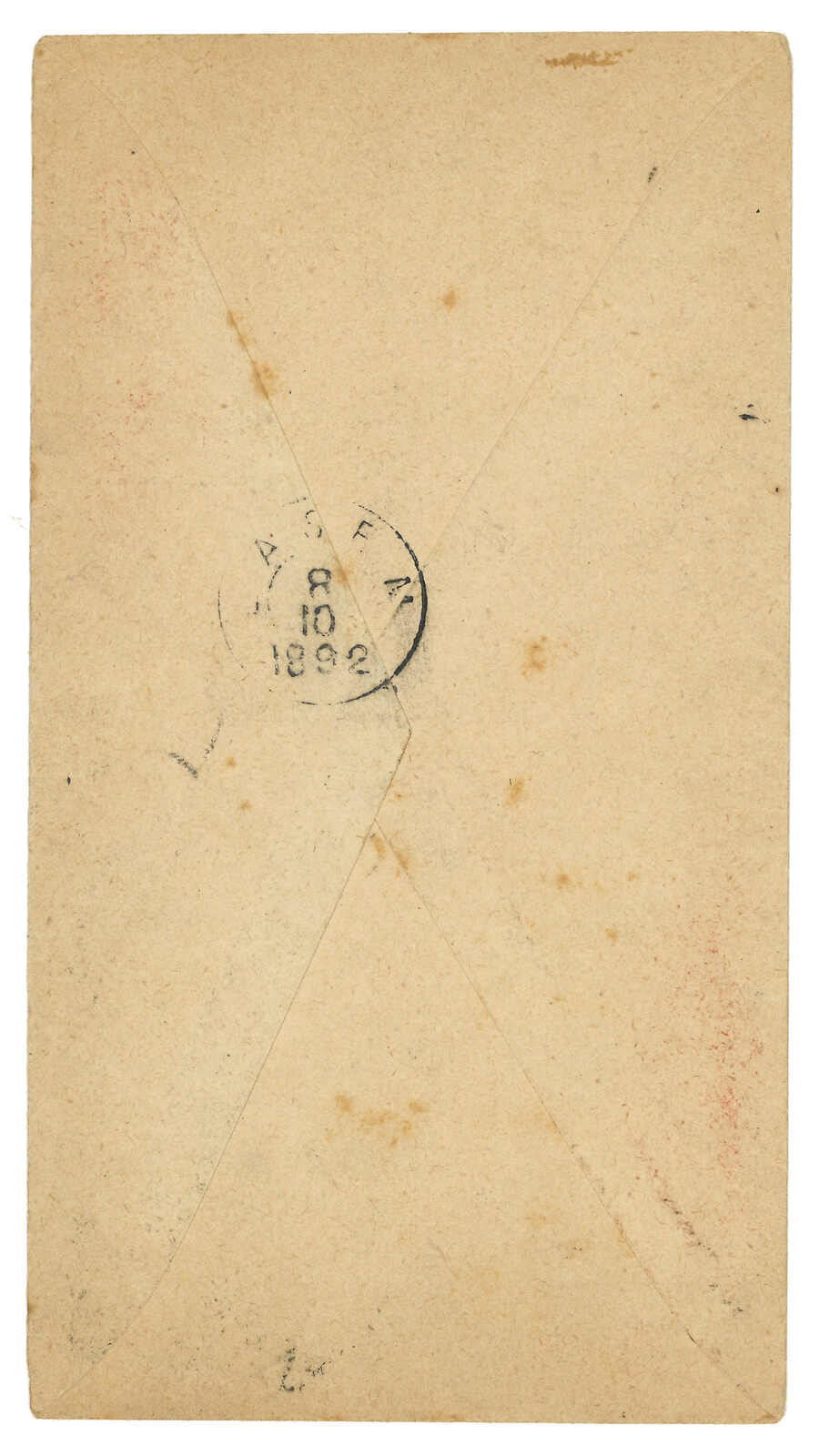 Arrived Makasser (3 Jan). Cover opened out for display. Scarce early example to Dutch East Indies via Imperial Post.