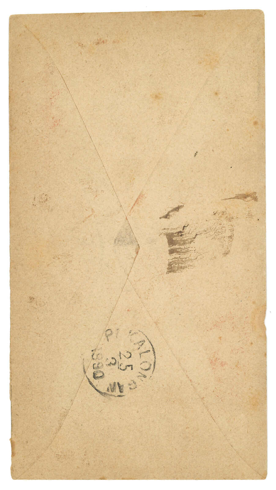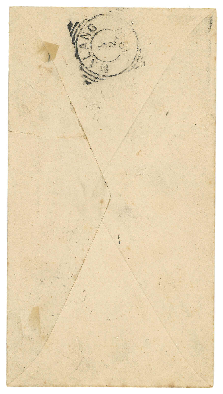 1900 (25 Sep) Dutch East Indies 2-1/2c stationery cover from Semarang to Ambarawa, tied by Semarang squared circle d.s., alongside with vertical Qiaopiju merchant seal. Arrived Ambarawa. Scarce early Chinese merchant