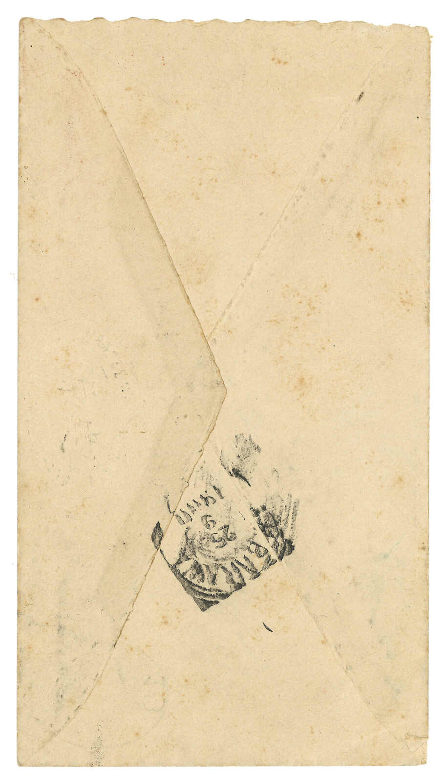 約1830年代巴達維亞寄Kedoe。郵簡,寫有郵資“100”,鈐橢圓形“BATAVIA / ONGEFRANKEERD”號角戳記。(Image 1)