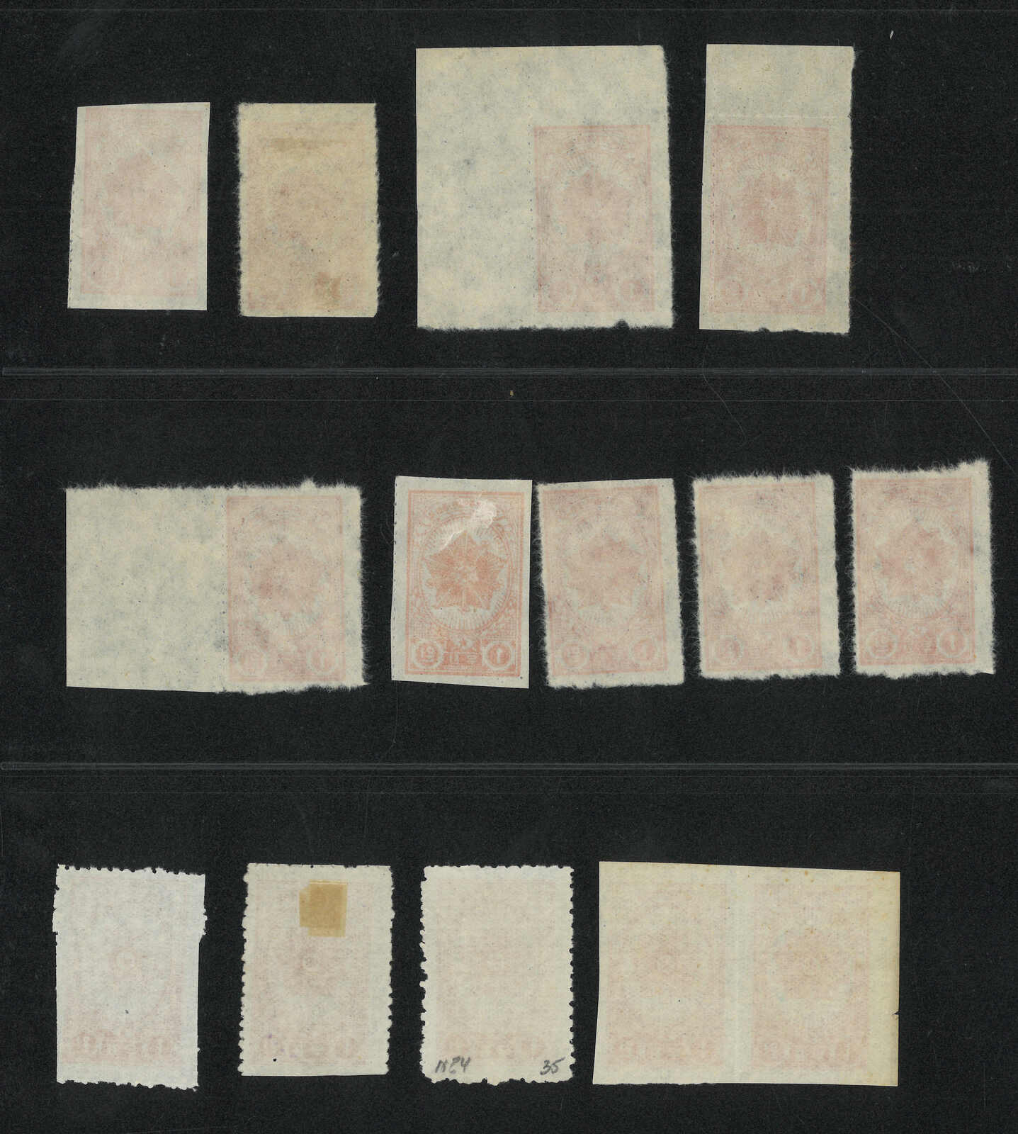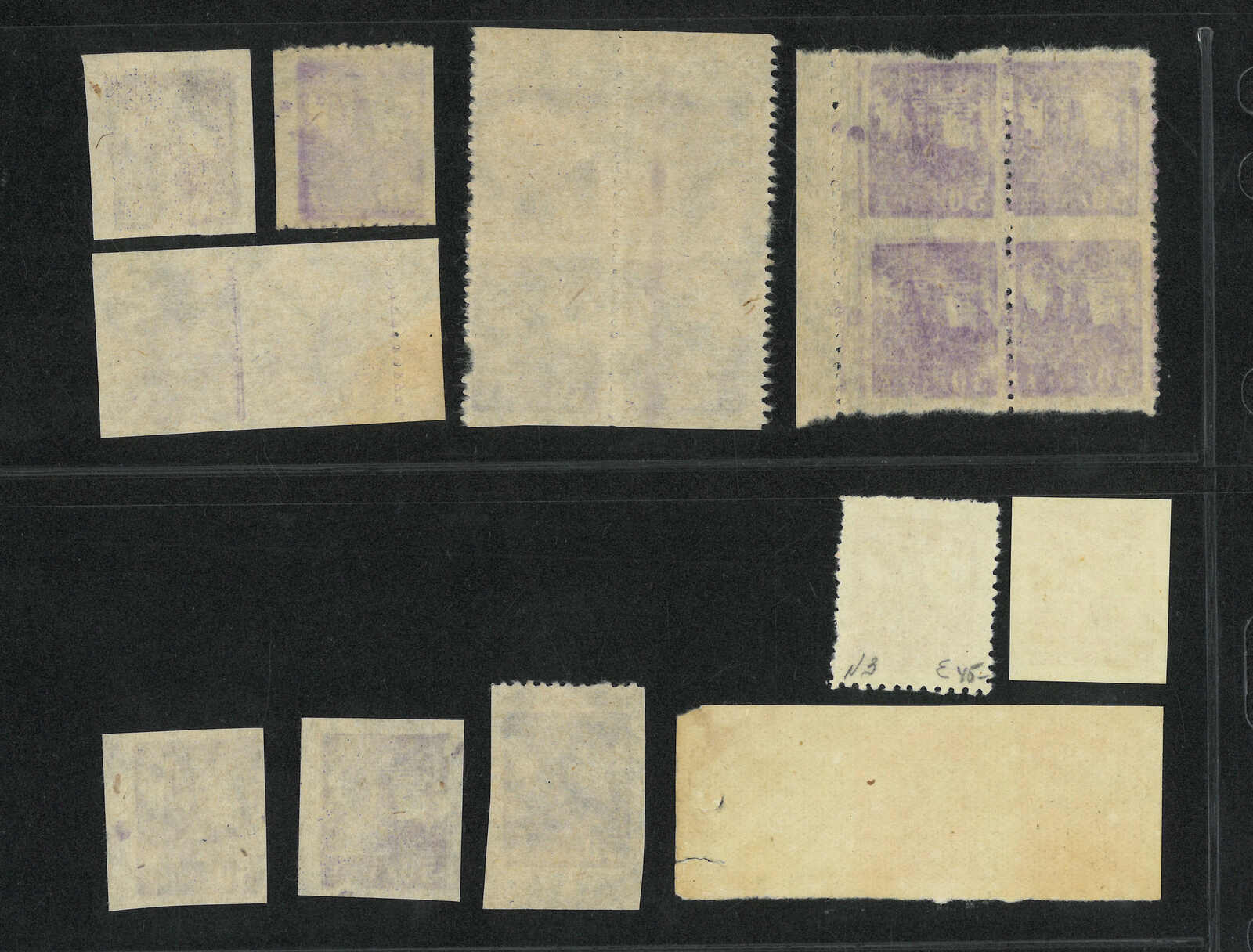 1946 Diamond Mountains violet and red 50w in a group of 19, containing perf and imperf sinlge and multiples. All mint.