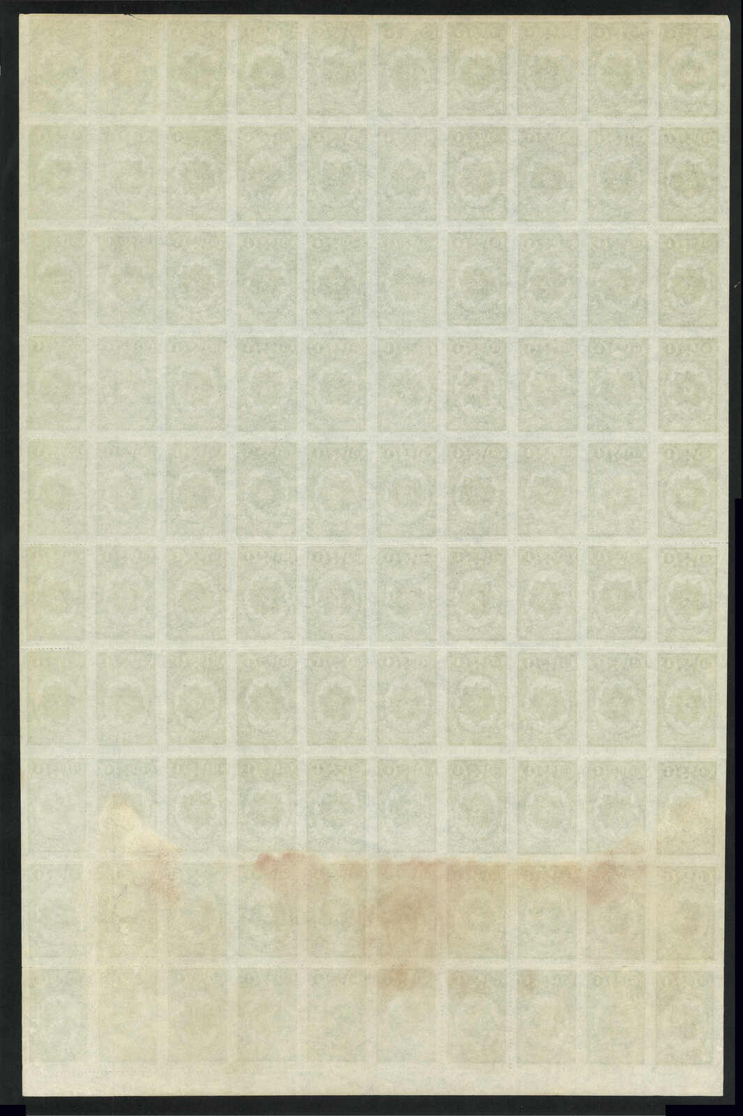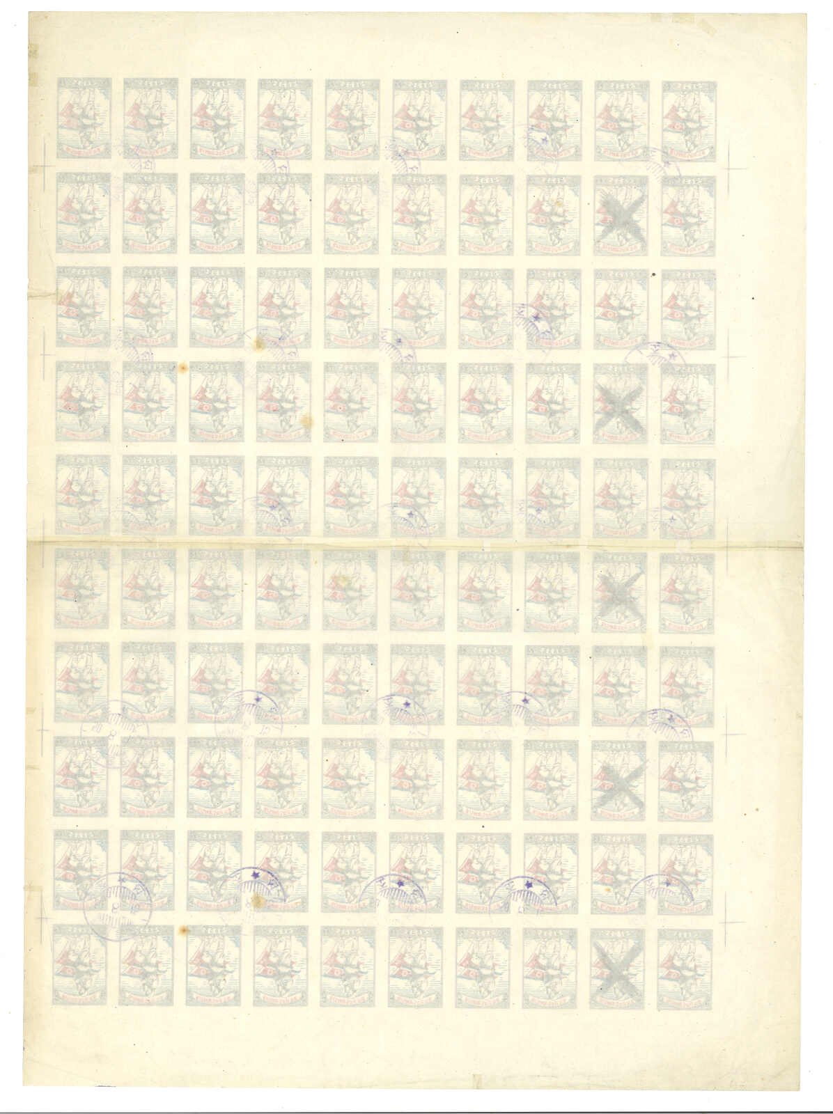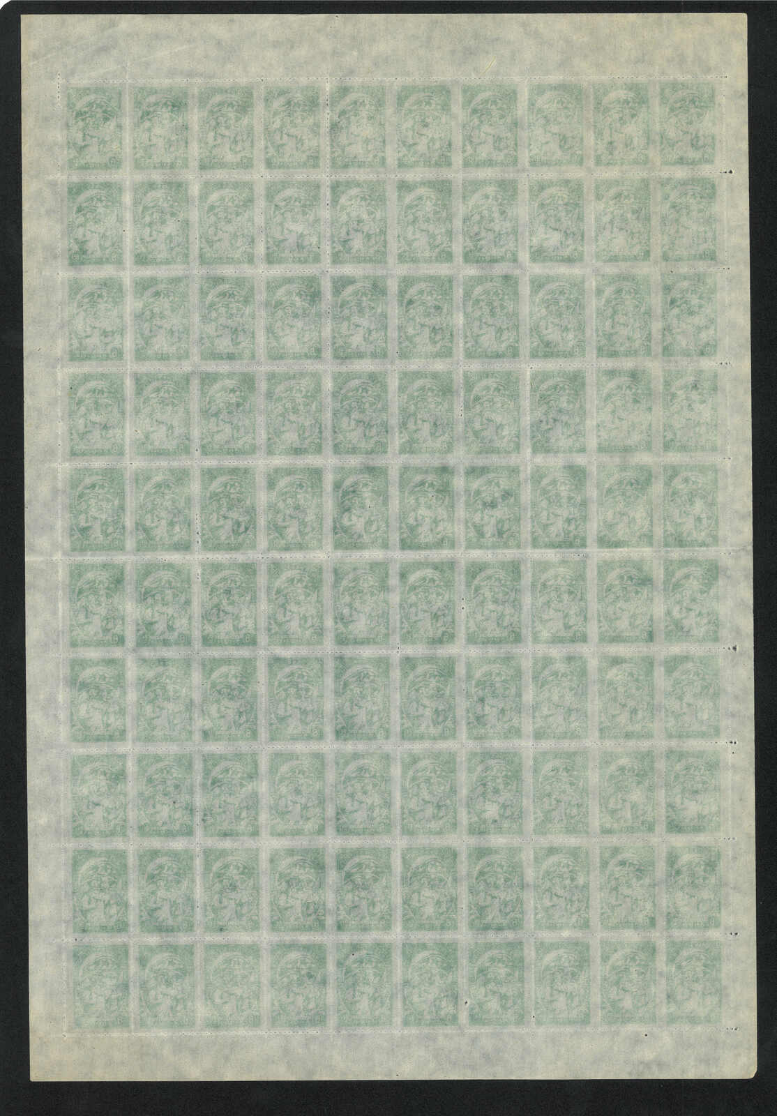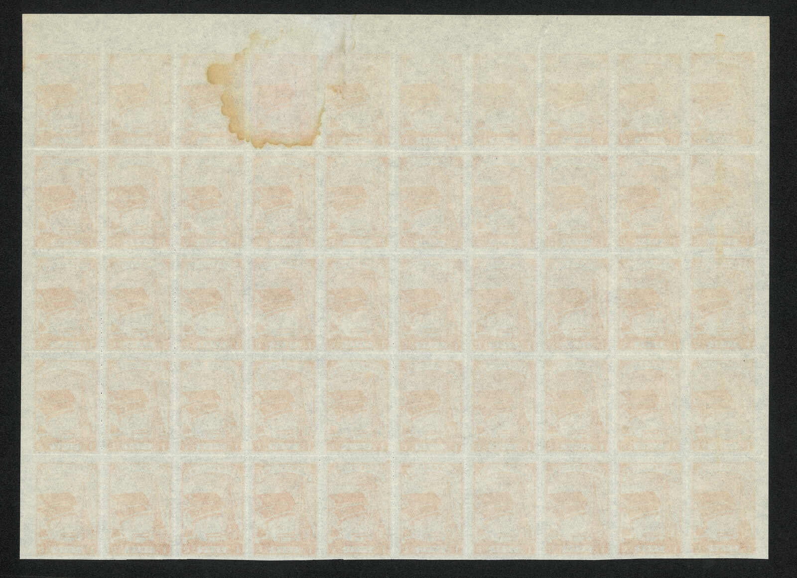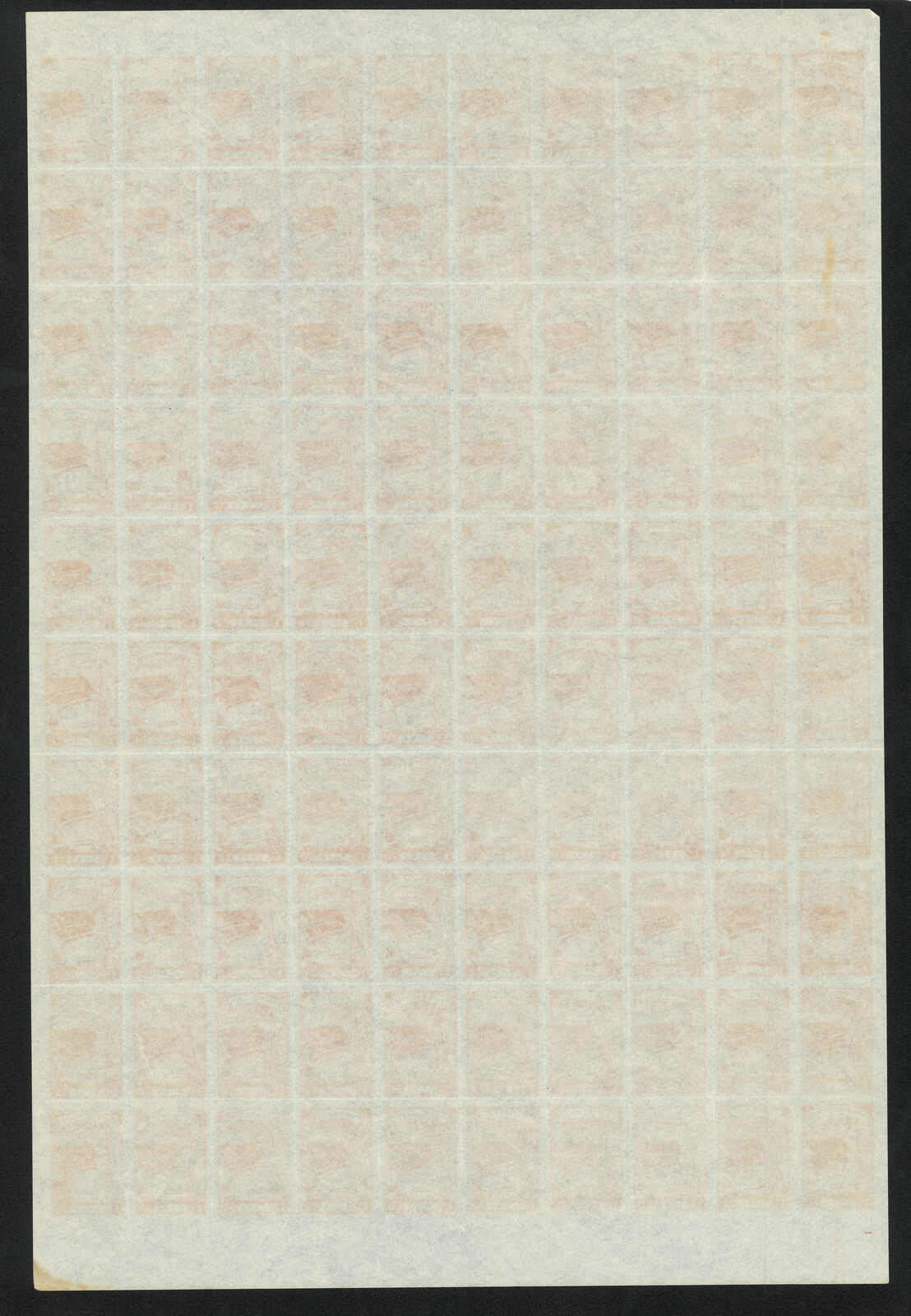 1949 North Korean Flag - Brownish Paper 6w in complete sheet of 100, MNH. Folded along perf.