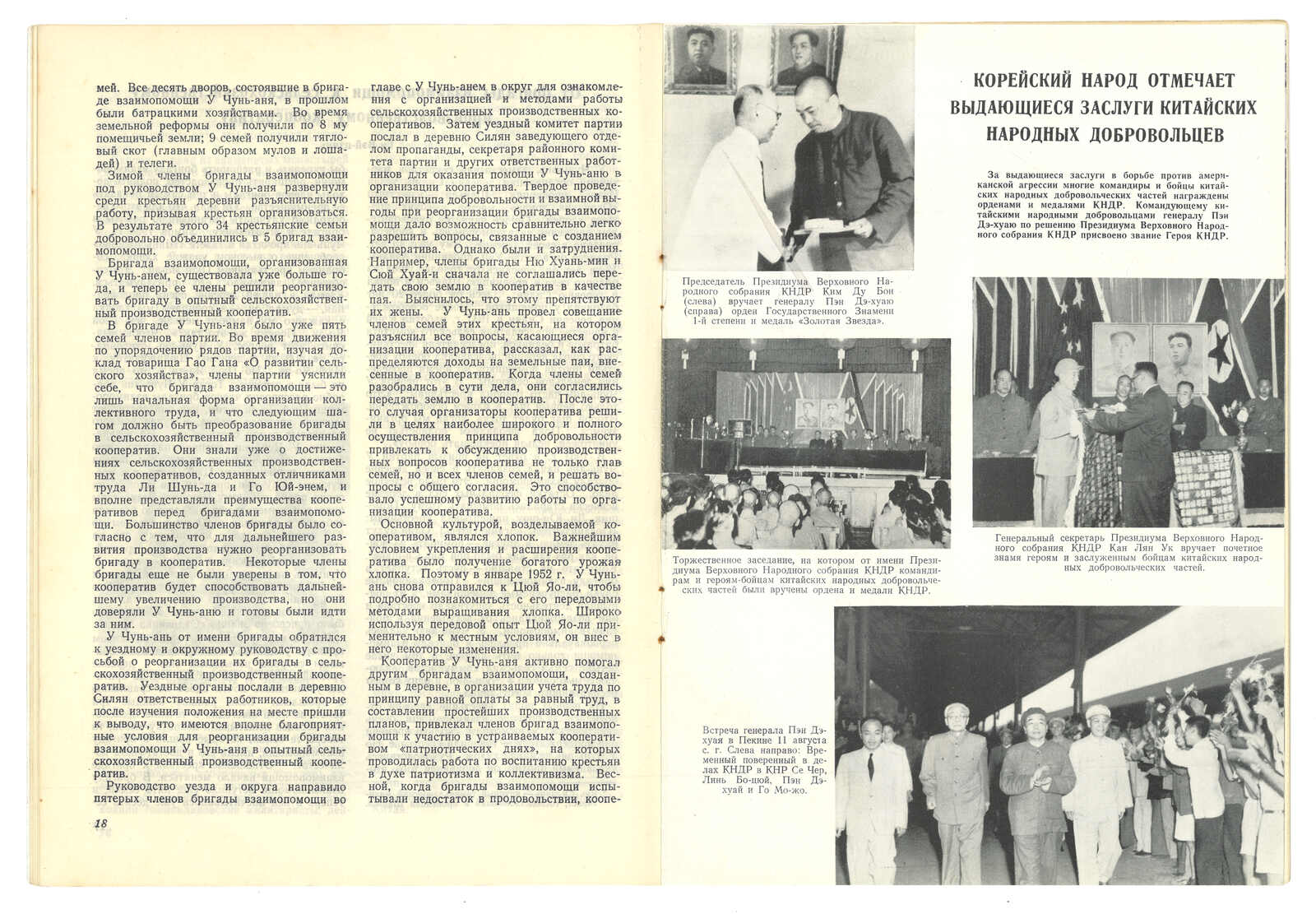 1953 Russian magazine "People's China", containing two pages recording the gratitude of Korean people to the People's Volunteer Army.