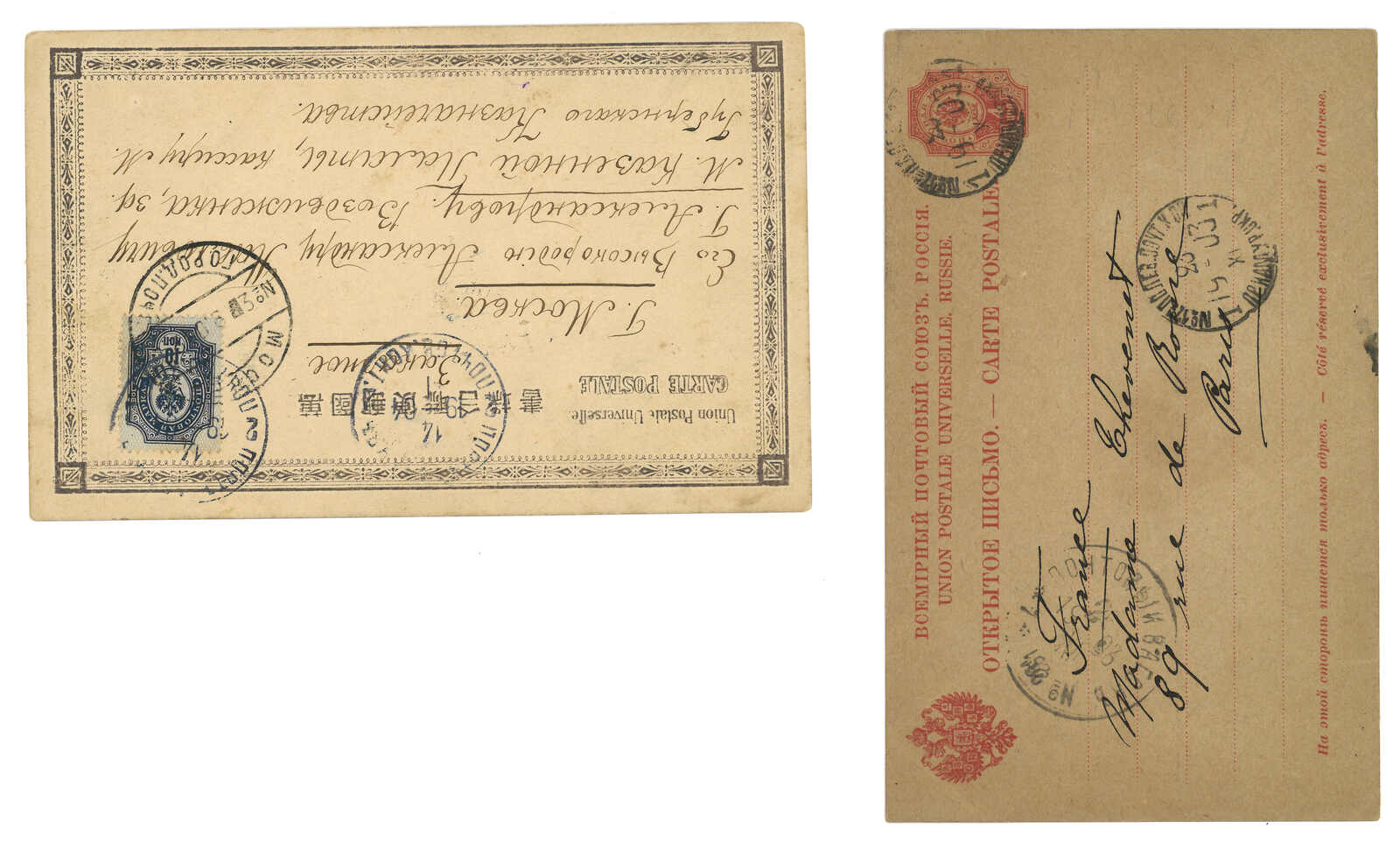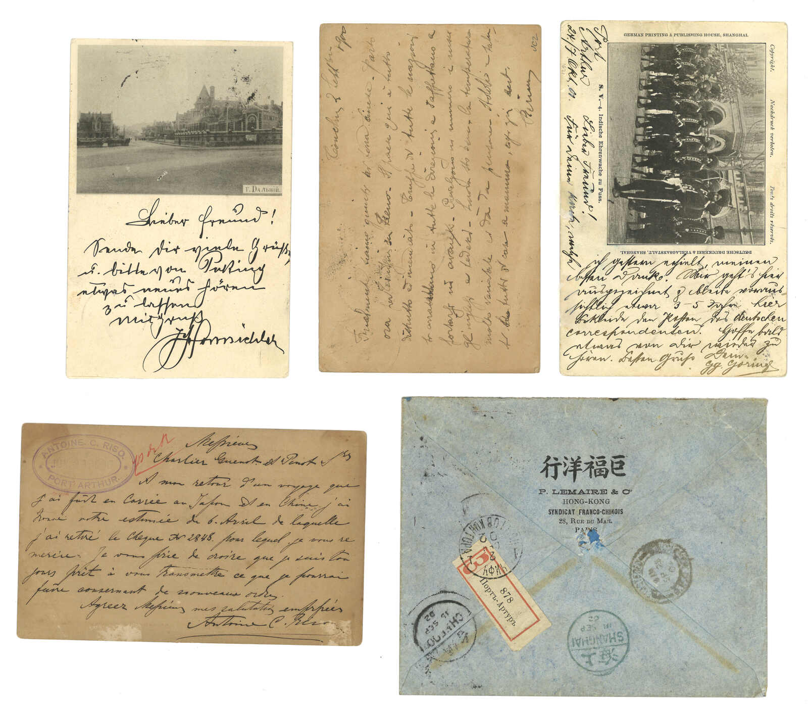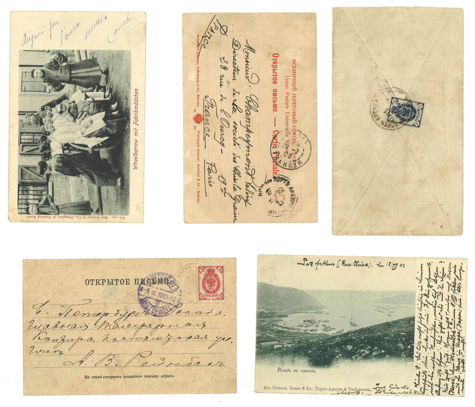 旅順大連,一組18件實寄封,含早期經烟臺轉遞的船上郵件、英文俄文日戳和挂號條等。(Image 1) (Image 2) (Image 3) (Image 4) (Image 5) (Image 6) (Image 7) (Image 8)