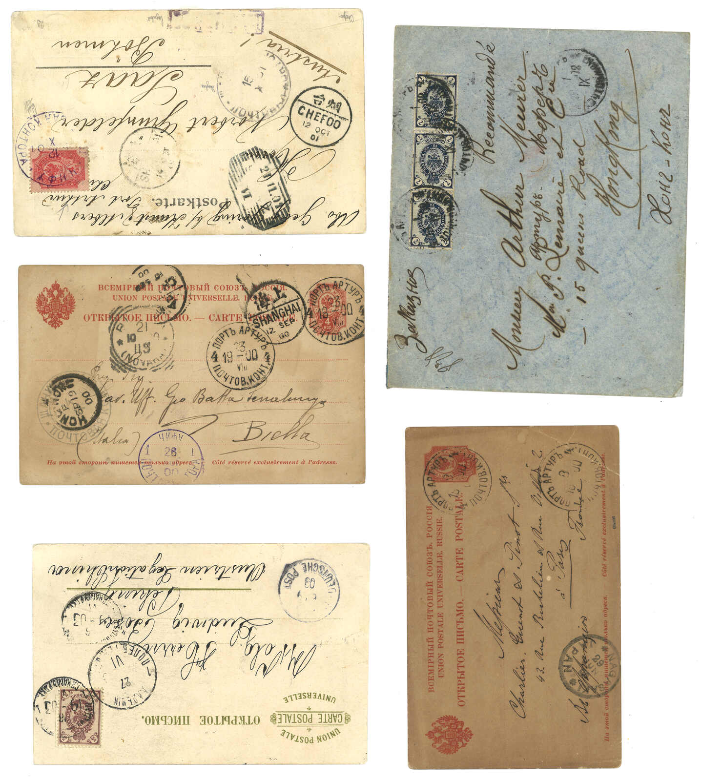 3144 imagePORT ARTHUR Russian PO. Group of 18 covers, including early Paquebot mail via Chefoo, registered etc showing various cds.