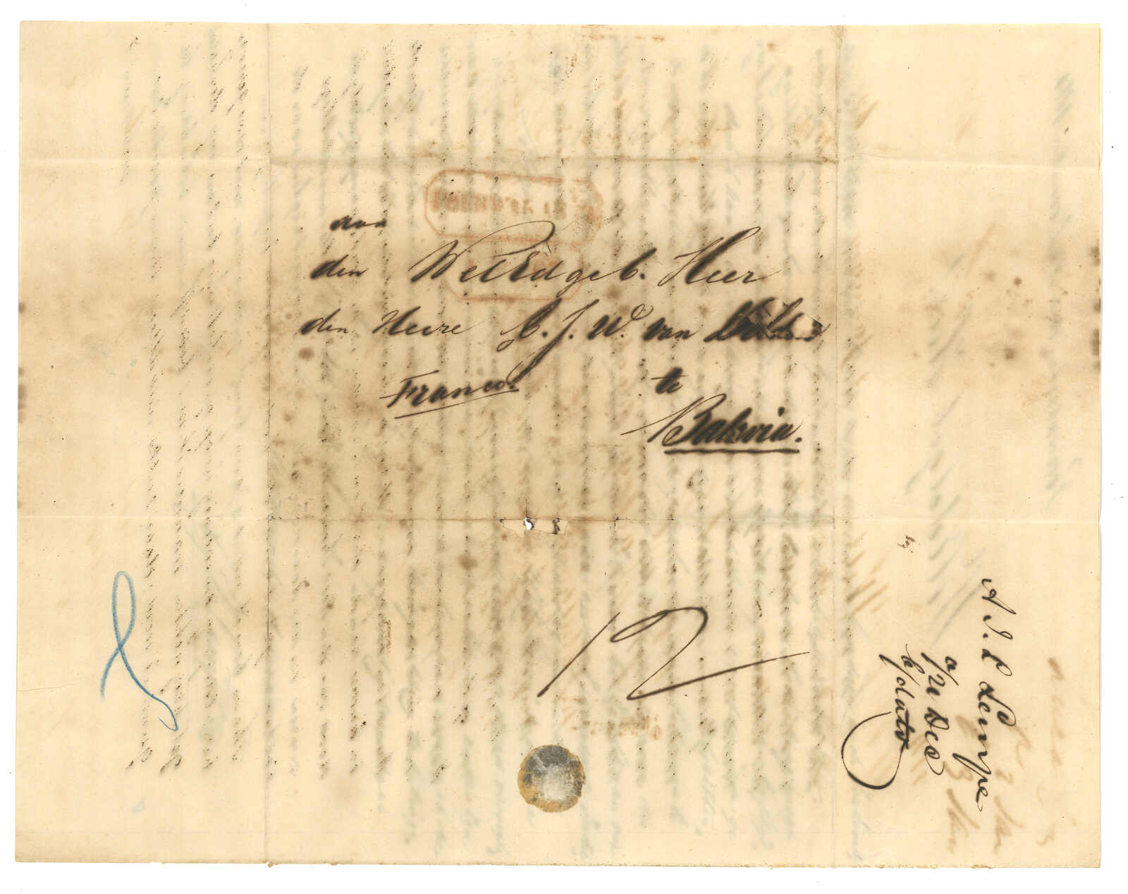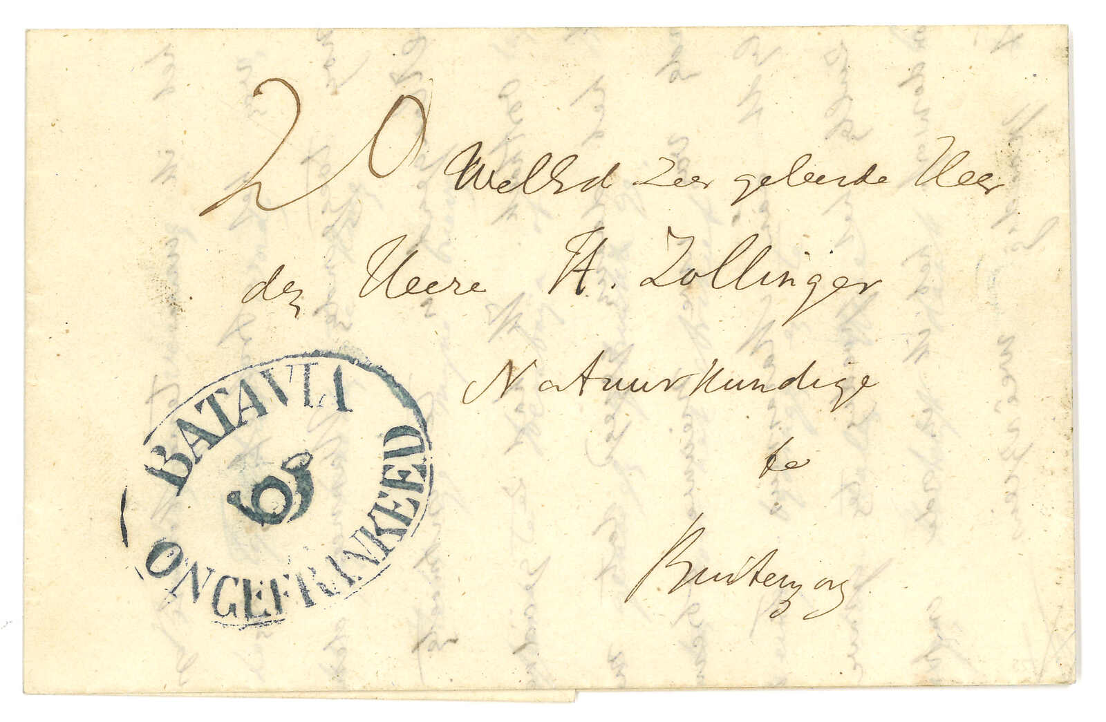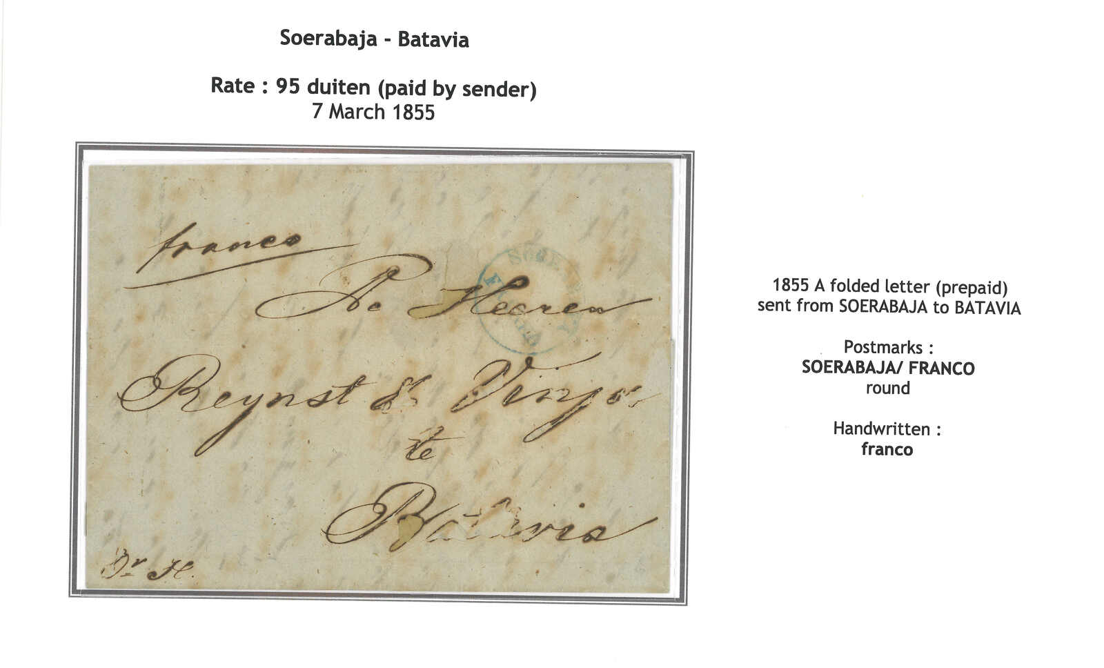 3841 image1840-1850s a group of 3 Dutch East Indies domestic entire, sending to Buienzorg and Soerabaja, with oval “FRANCO” or “ONGEFRANKEERD” oval seals.oval seals..